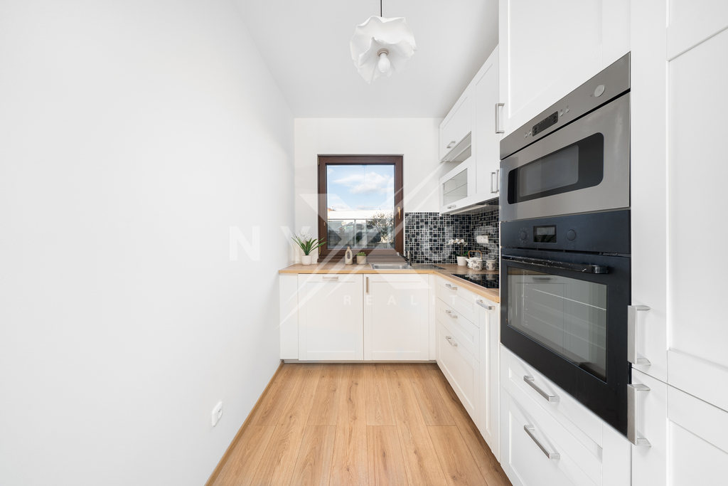 V přízemí domu se nachází světlý obývací pokoj s kuchyňským koutem (moderní kuchyňská linka s vestavnými spotřebiči), technická místnost, toaleta a komora. V prvním patře domu se nachází dva pokoje a koupelna s vanou.