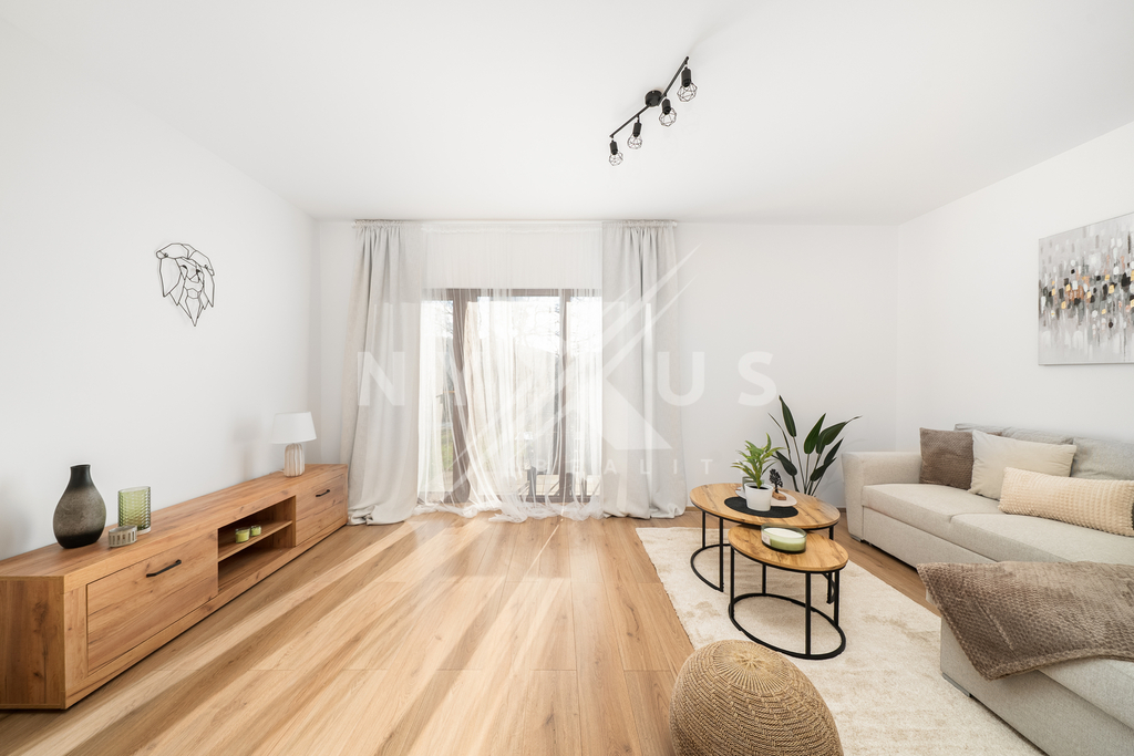 Z obývacího pokoje přímý vstup na terasu (6 m²) a zahradu (140 m²).