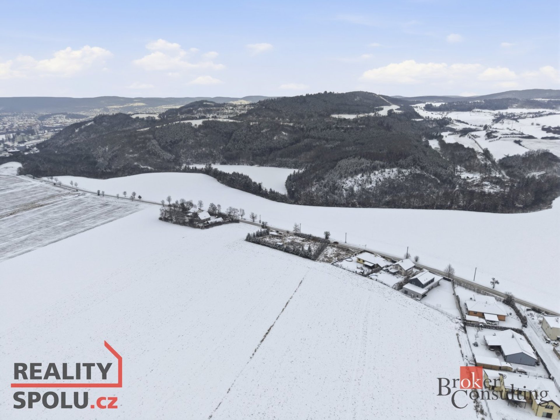 Pozemek je mírně svažitý a poskytuje atraktivní výhled do krajiny. Významnou výhodou je kombinace klidné lokalitě uprostřed přírody a výborné dostupnosti — Praha cca 30 km, kompletní občanská vybavenost v Králově Dvoře do 5 minut jízdy.