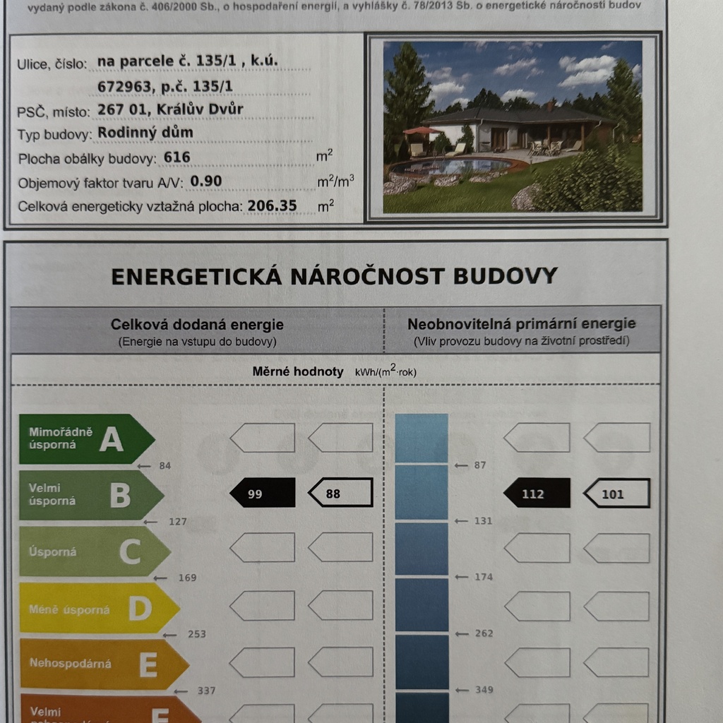 - Ukazatel energetické náročnosti budovy: 20.4 kWh/m²