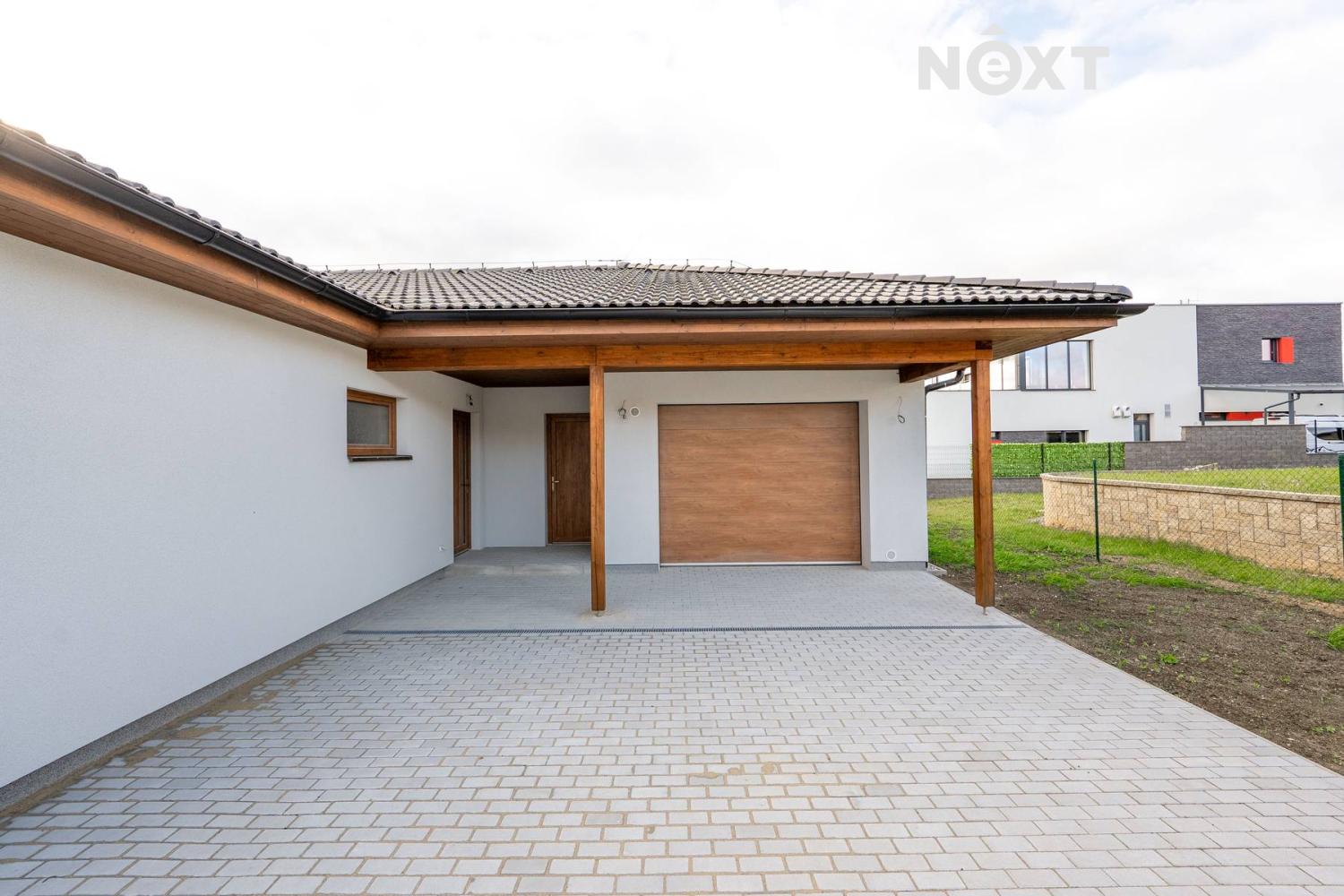 Před domem a garáží je dokončena zámková dlažba, která umožňuje pohodlný příjezd i vstup do domu. Pozemek je kompletně oplocen, což zajišťuje soukromí i bezpečí pro celou rodinu.
