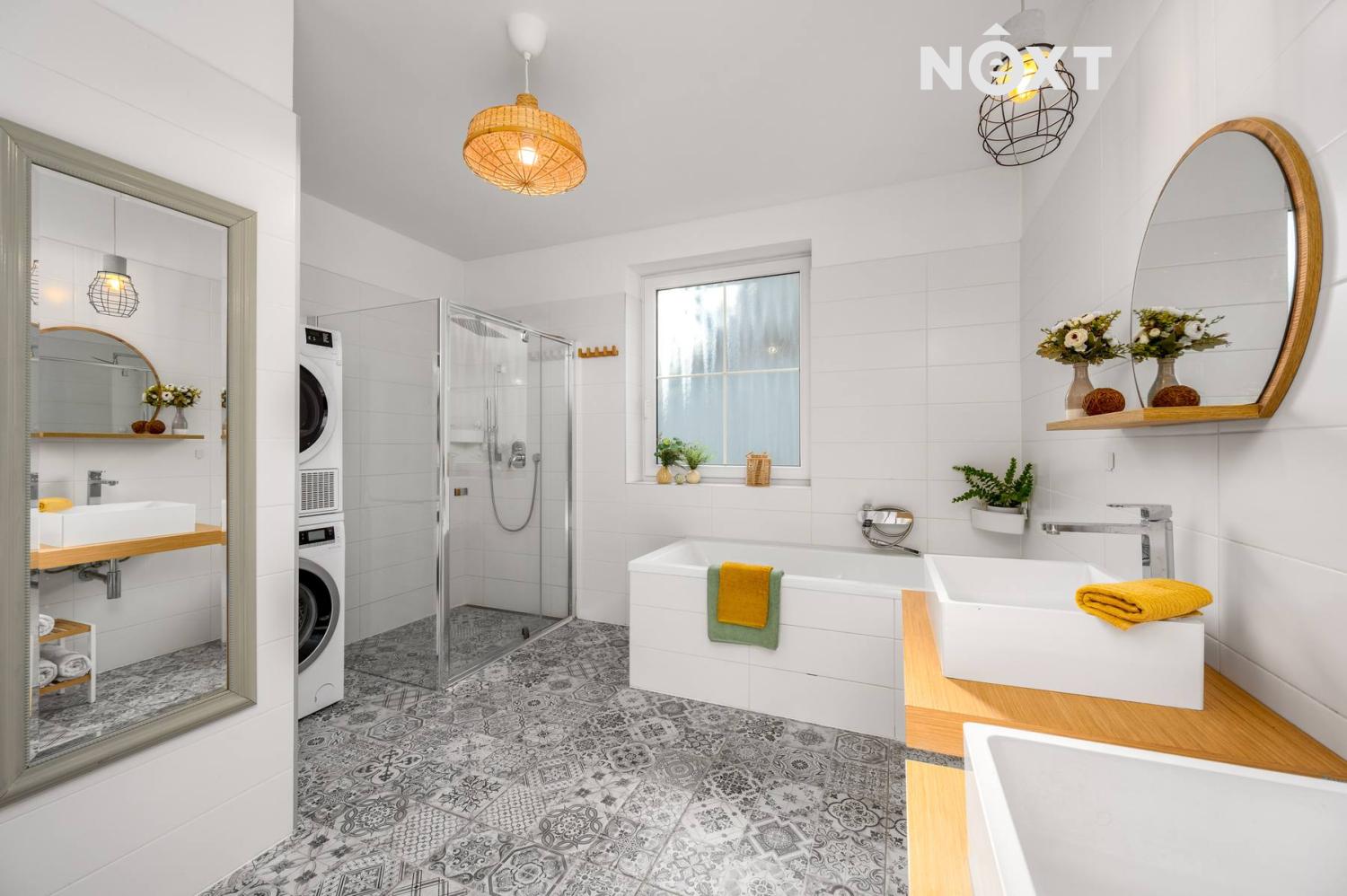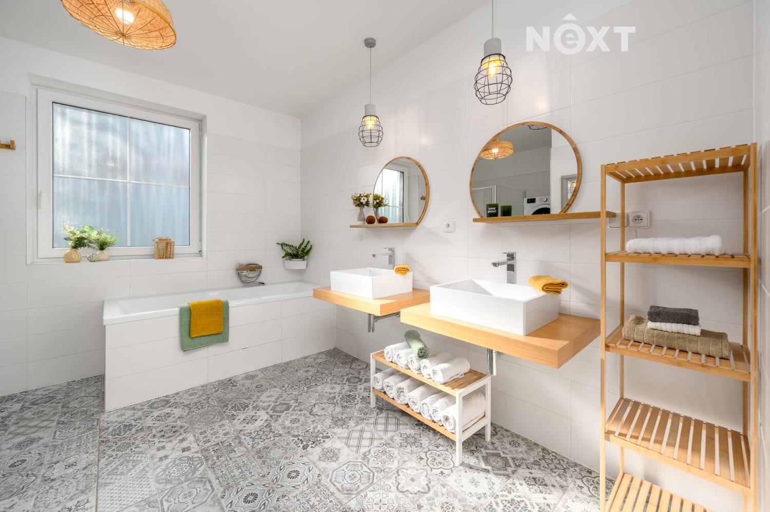 Budete si pochvalovat i praktické bonusy, jako je velká šatní místnost či prostorná, elegantní koupelna vybavená jak vanou, tak sprchovým koutem. Celkovou atmosféru podtrhuje příjemná terasa, kde si můžete užívat posezení při slunečných dnech a odpočívat, zatímco si vaše děti budou hrát na zahradě – a to vše v naprostém soukromí. V domě je navíc připravena možnost instalace krbu či kamen. Oceníte i velkou garáž, která pohodlně pojme i větší vůz a nabídne dostatek prostoru pro uskladnění vybavení. Nemovitost je částečně zařízená a ihned obyvatelná.