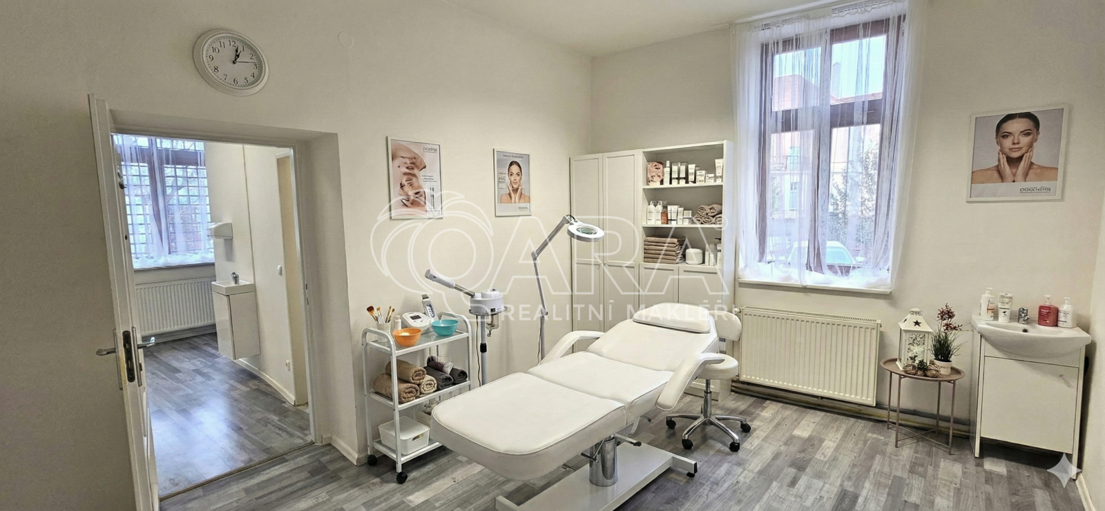 Jedná se o světlý, moderní interiér s jednou místností, který poskytuje veškeré potřebné zázemí a je součástí zavedeného salónu, kde najdete i kadeřnictví, solárium a masáže. Tento prostor je ideální například pro masážní studio nebo nehtové studio, manikúru a pedikúru, s vizualizacemi obou možností v nabídce.