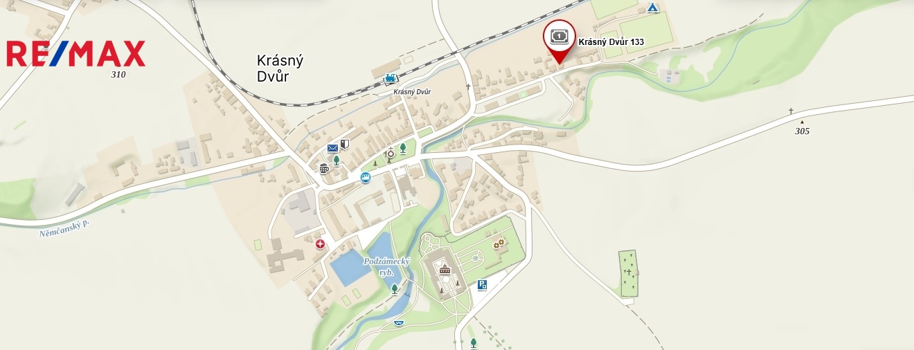 Obec Krásný Dvůr se nachází v malebné krajině okresu Louny a nabízí ideální prostředí pro klidný rodinný život i aktivní odpočinek. Leží jen 6 km od města Podbořany, 18 km od Žatce. Jen pouhých 15 km je vzdálená Nechranická přehrada – místo vyhledávané milovníky vodních sportů a rybaření. Díky výhodné poloze a blízkosti hlavních dopravních tahů (D6 a D7) je dobře dostupná i Praha – Zličín či Ruzyně jsou autem dosažitelné přibližně za 55 minut. Po plánovaném dokončení dalších úseků dálnice D7 bude spojení s hlavním městem ještě rychlejší a pohodlnější.
