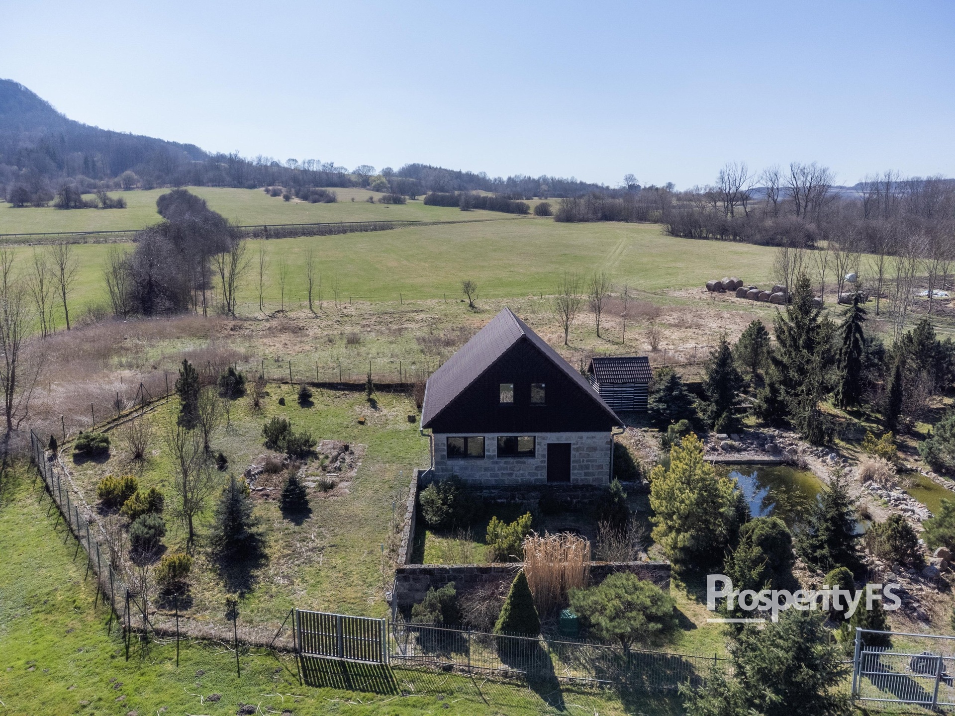 Na pozemku se nachází také zahradní domek postavený ve stylu roubenky, který kromě možnosti vybudování suchého WC nabízí i prostor pro uložení zahradního nářadí. Celý pozemek je oplocený, se dvěma vjezdovými bránami, a nabízí naprosté soukromí – v okolí nejsou žádní přímí sousedé.