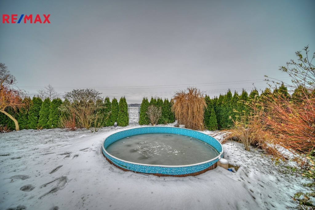 • zapuštěný kruhový bazén (Ø 4,60 m, hloubka 1,20 m),
