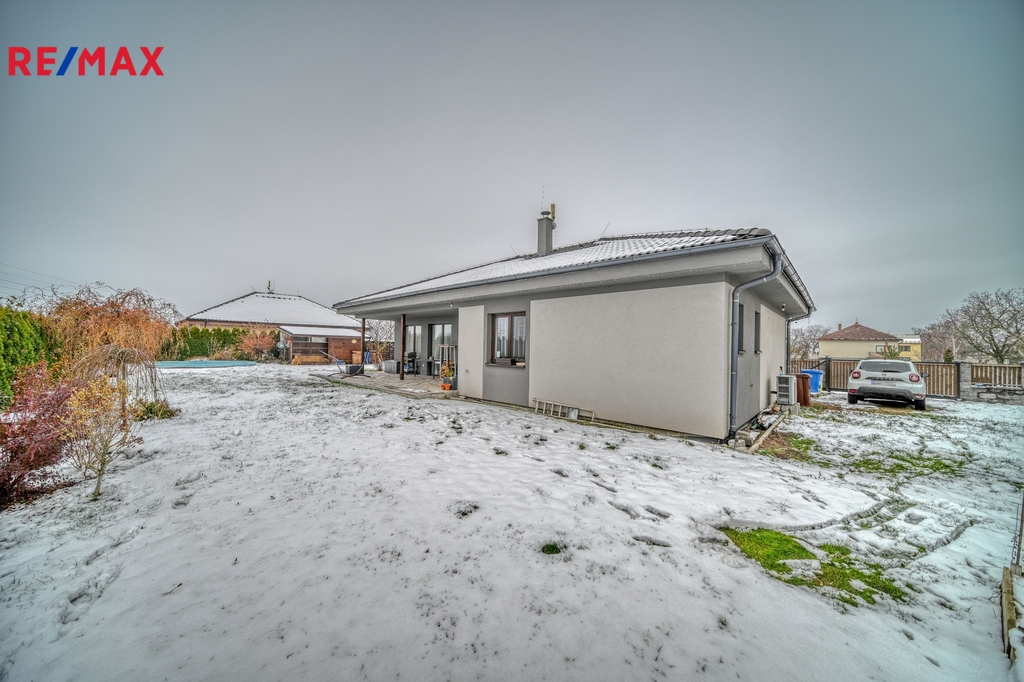 Zahrada nabízí dostatek prostoru pro rodinný život, odpočinek i další úpravy dle vlastních představ.