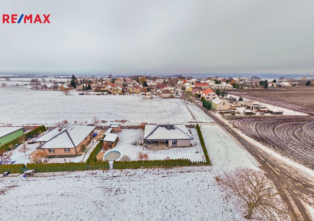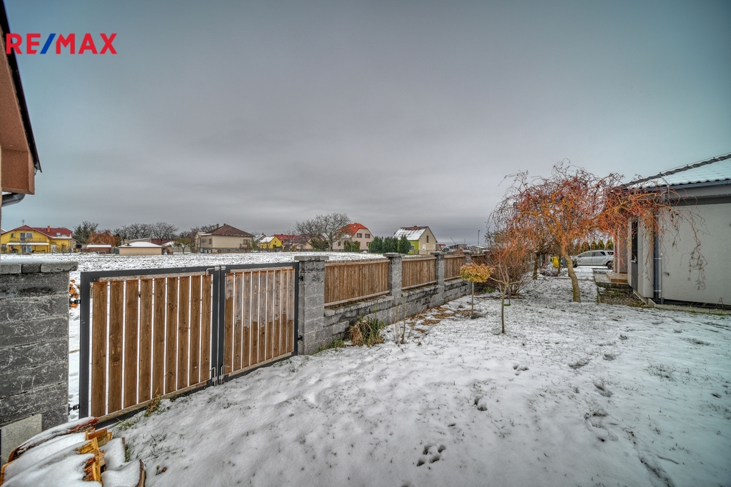 Pozemek je kompletně oplocený, přístup zajišťují posuvná elektrická vrata.