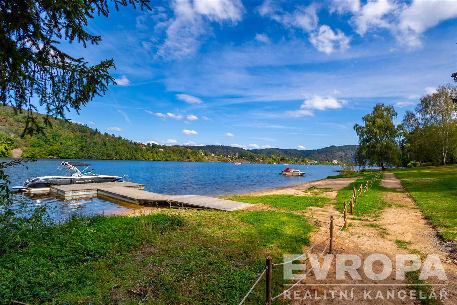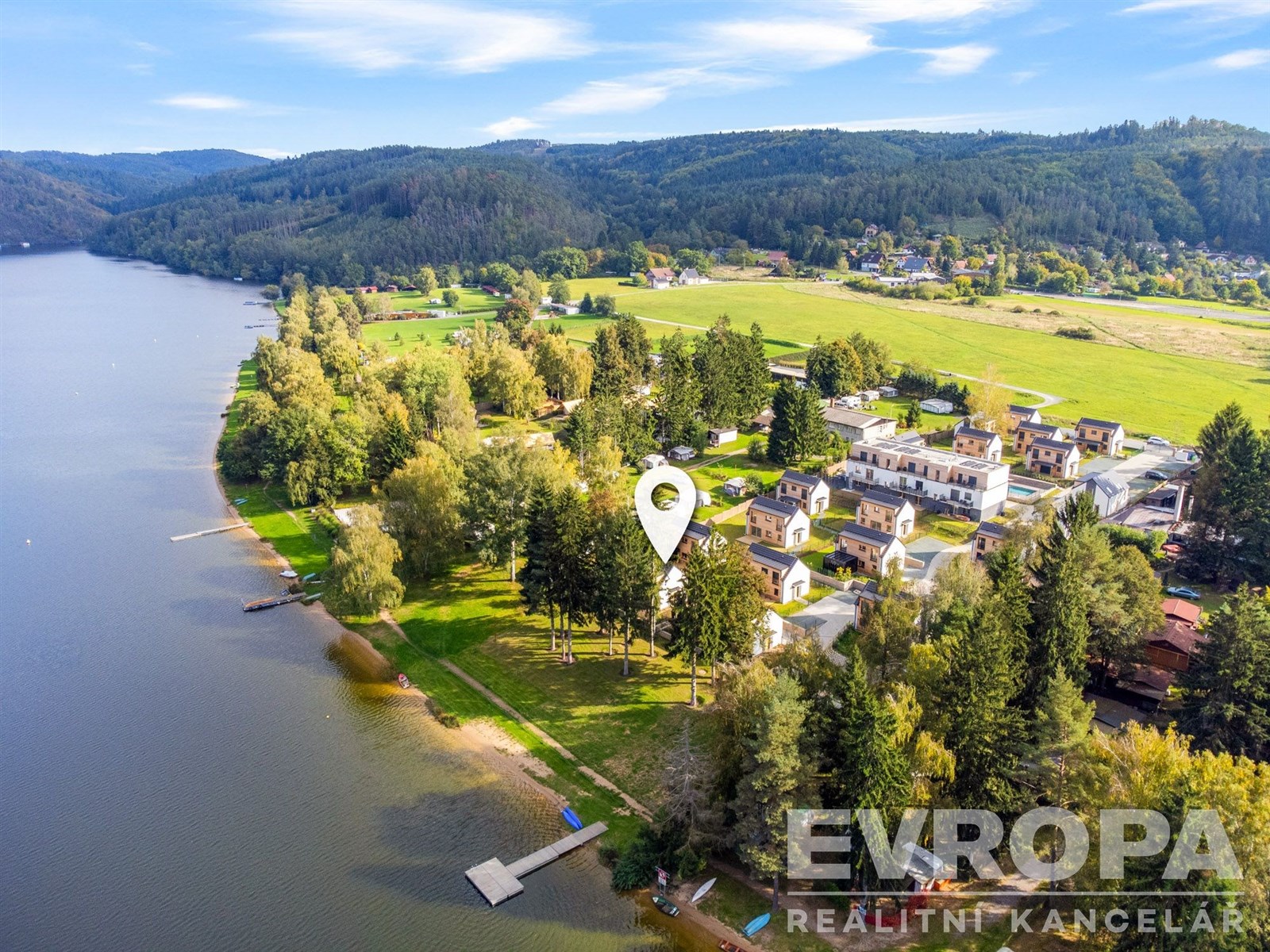Prodej luxusní chaty přímo na pláži Slapské přehrady v uzavřeném areálu s bazénem