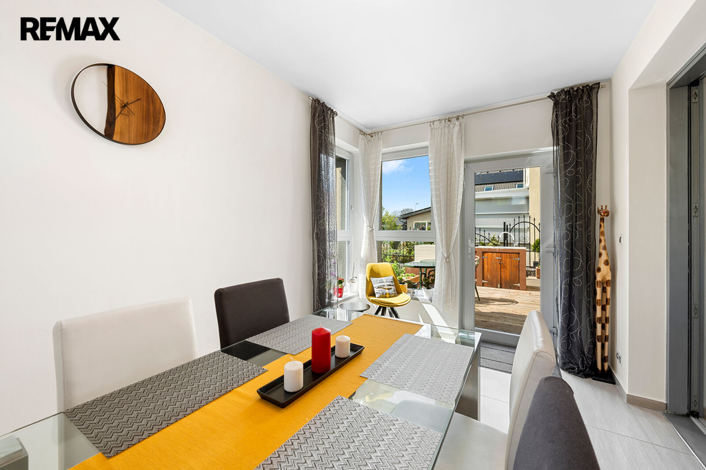 Na střeše je dostatek prostoru pro realizaci fotovoltaického systému s již hotovou přípravou resp. propojením do technické části domu. Rovněž jsou hotovy rozvody na využití centrálního vysavače. Další přidanou hodnotou jsou bezesporu dvě terasy - v přízemí navazuje na jídelní místnost se vstupem na zahradu, kde je umístěna otevřená zahradní kuchyně. V horním patře jde spíše o prostorově skromnější terasu. Obě s přímým pohledem na zahradu.