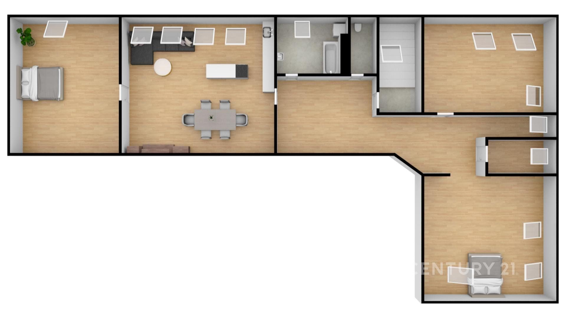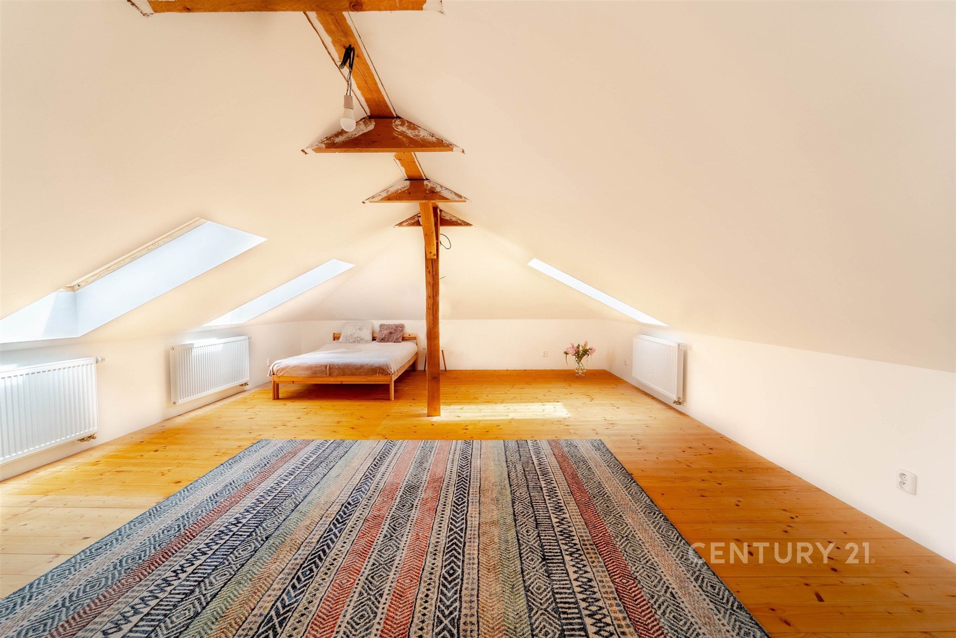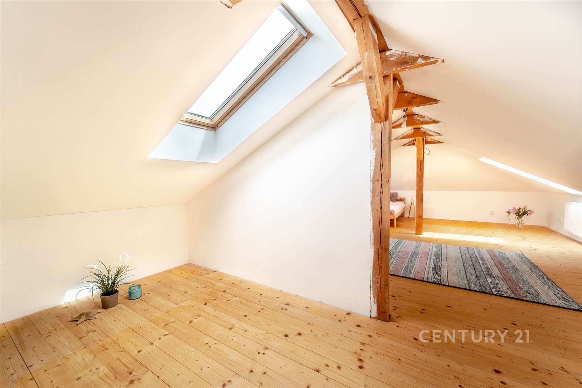 Podkroví bych definovala slovy, světlo, prostor a seberealizace, kterou zde můžete uplatnit. Dispozice 4 kk se skládá prostorného obývacího pokoje (58,4 m2) s kuchyňským koutem, z ložnice (38,8 m2), pokoje (30 m2), pokoje (18 m2), šatny (62,40 m2), malé pracovny/kumbálu (3,4 m2), koupelny s vanou (18,6 m2). Zde jsou radiátory.