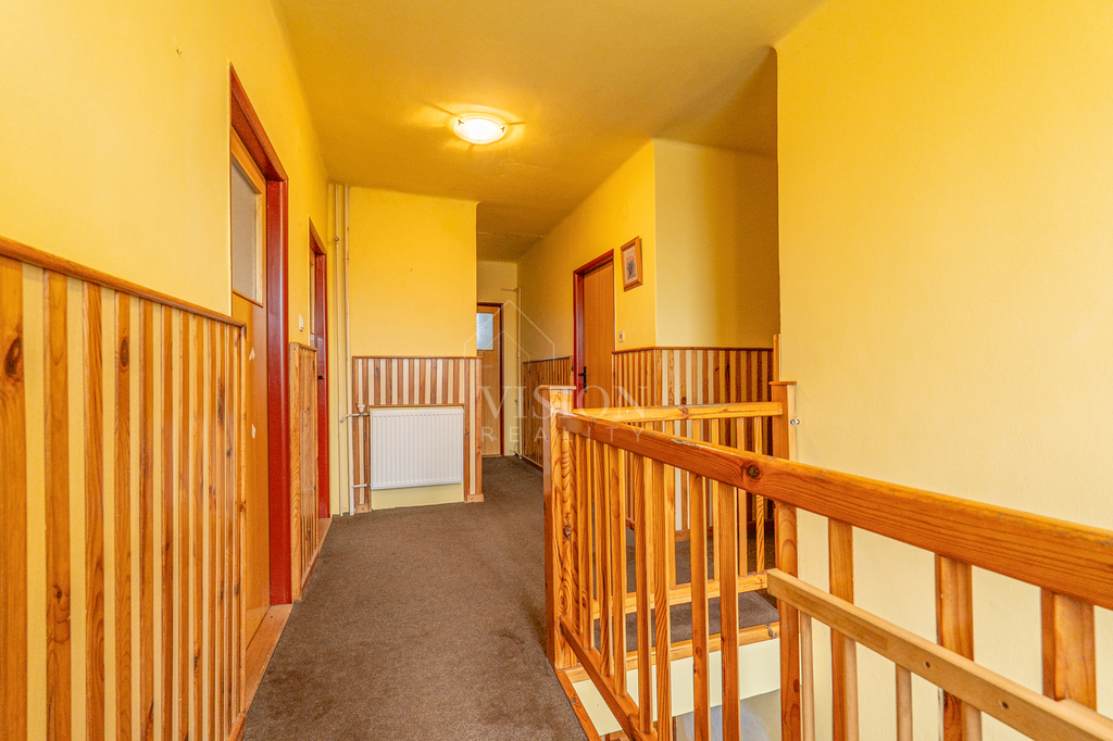 V přízemí domu se nachází vstupní chodba, samostatné WC, kuchyně, ložnice a dva dětské pokoje. Druhé nadzemní podlaží disponuje ložnicí, obývacím pokojem, kuchyní, koupelnou a samostatným WC, což umožňuje pohodlné bydlení i vícegenerační využití. Velkým benefitem je půdní prostor, který nabízí možnost rozšíření obytné plochy dle vlastních představ.