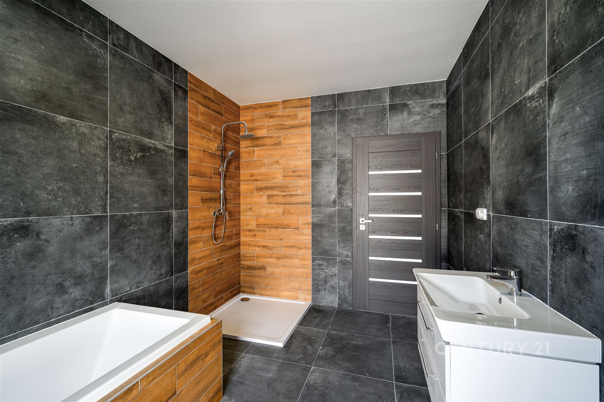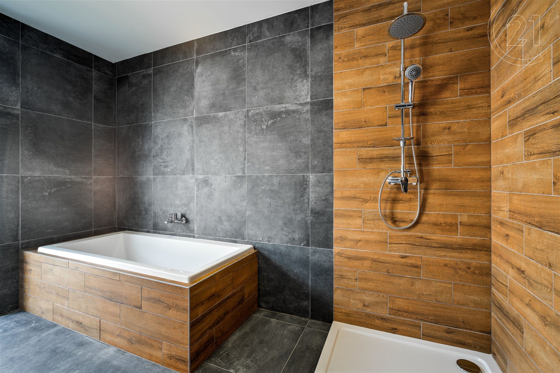 Koupelna s vanou, sprchovým koutem a dvěma umyvadly – 9,30 m²