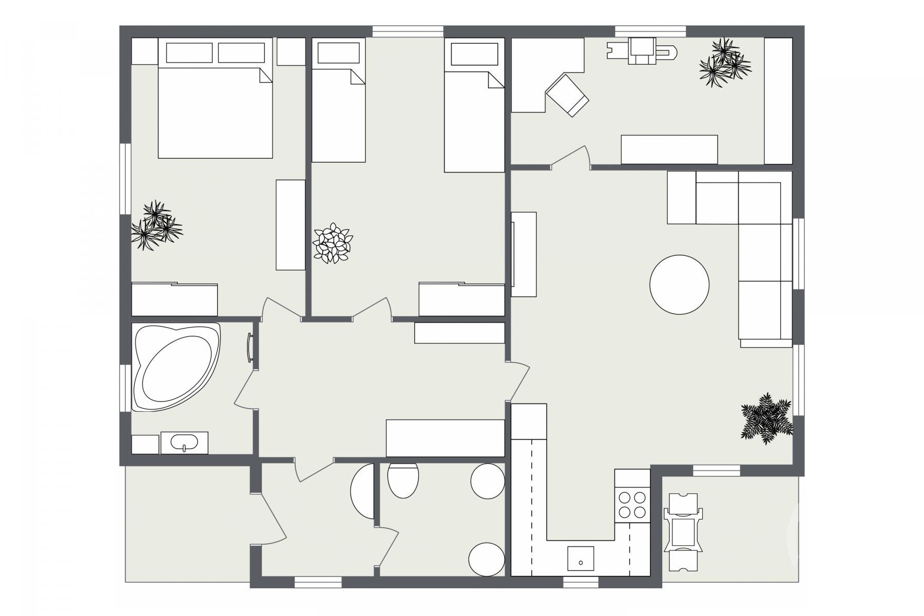 - Má pěknou dispozici 4+KK a z obýváku vstup i ven na zahradu. V ostatních pokojích je dost místa a jsou neprůchozí. Zastavěno cca 115 metrů,