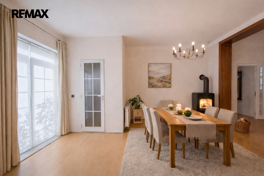Velkým bonusem je vyvložkovaný komín v jídelní části, který umožňuje instalaci krbových kamen v kuchyni s jídelnou. Ta mohou vytvořit nejen příjemné teplo, ale i jedinečnou atmosféru domova, neboť prostor sousedí s otevřeným obývacím pokojem. Dalším bonusem jsou dva sklepy o celkové výměře cca 35 m², které nabízí nadstandardní úložný prostor nebo možnost vytvoření praktické domácí dílny či hobby zázemí.