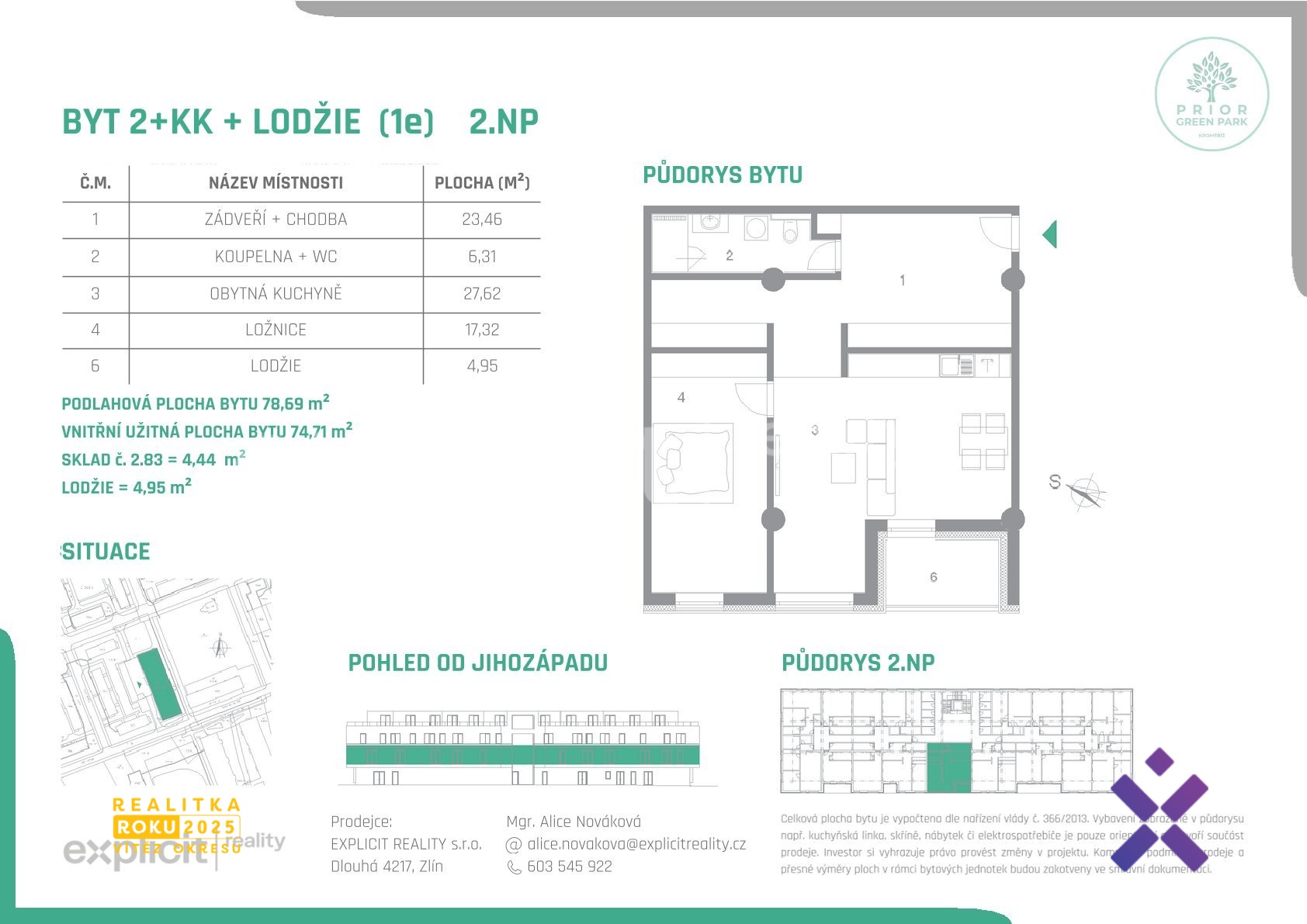 | Dispozice/podlahová plocha: | 2+kk/79 m² |