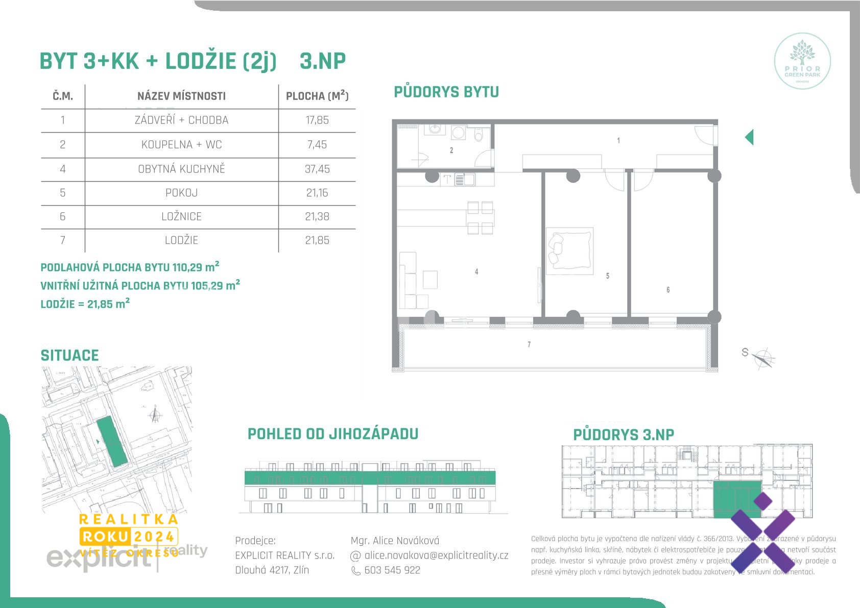 Prodej bytu 3+kk s lodžií 110,29 m², Prior Green Park Kroměříž