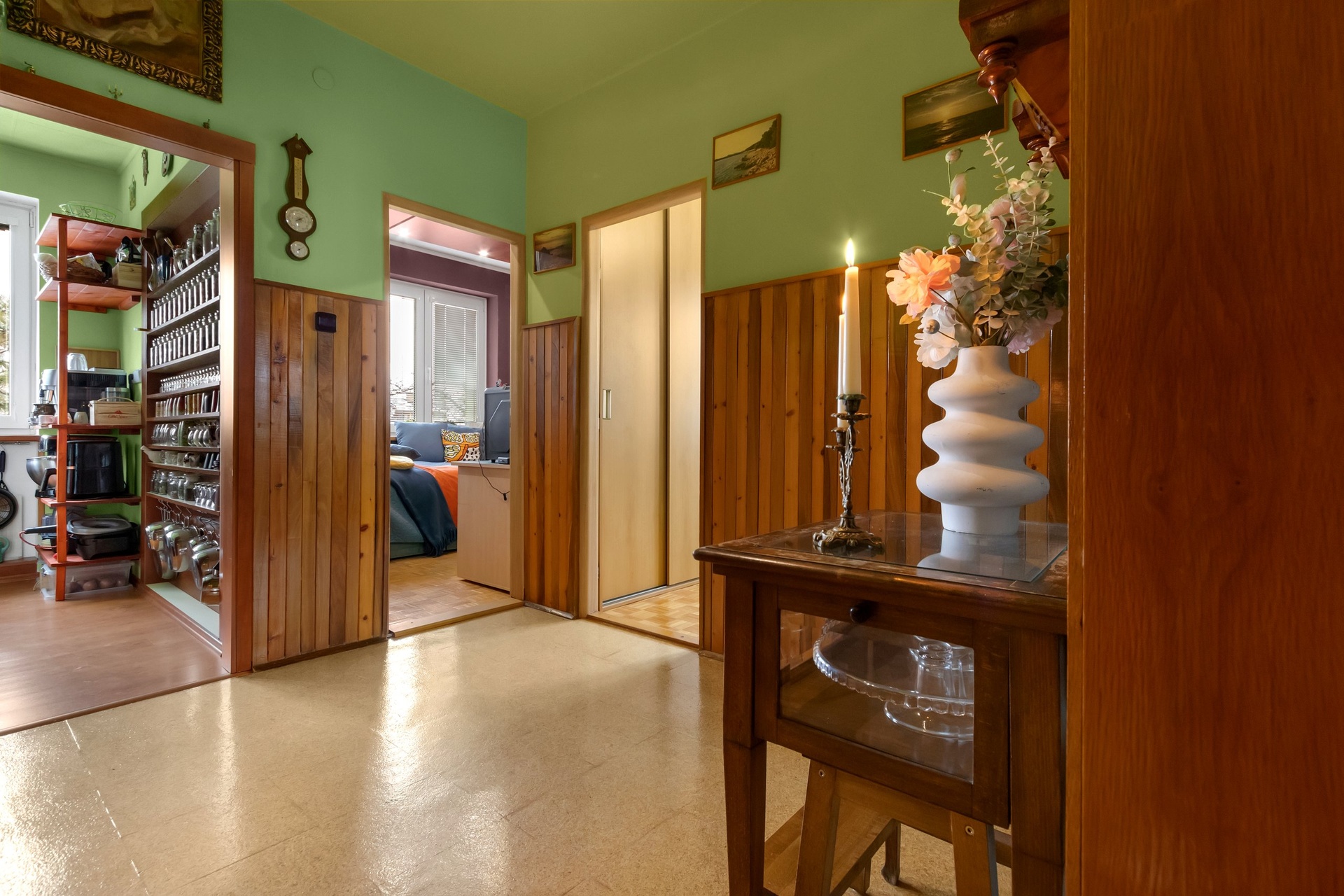 Už při vstupu vás přivítá prostorná vstupní hala s velkým množstvím vestavěných úložných prostor. Byt má velmi dobře řešené uspořádání – každý pokoj má samostatný vstup, což zajišťuje dostatek soukromí pro všechny členy domácnosti.