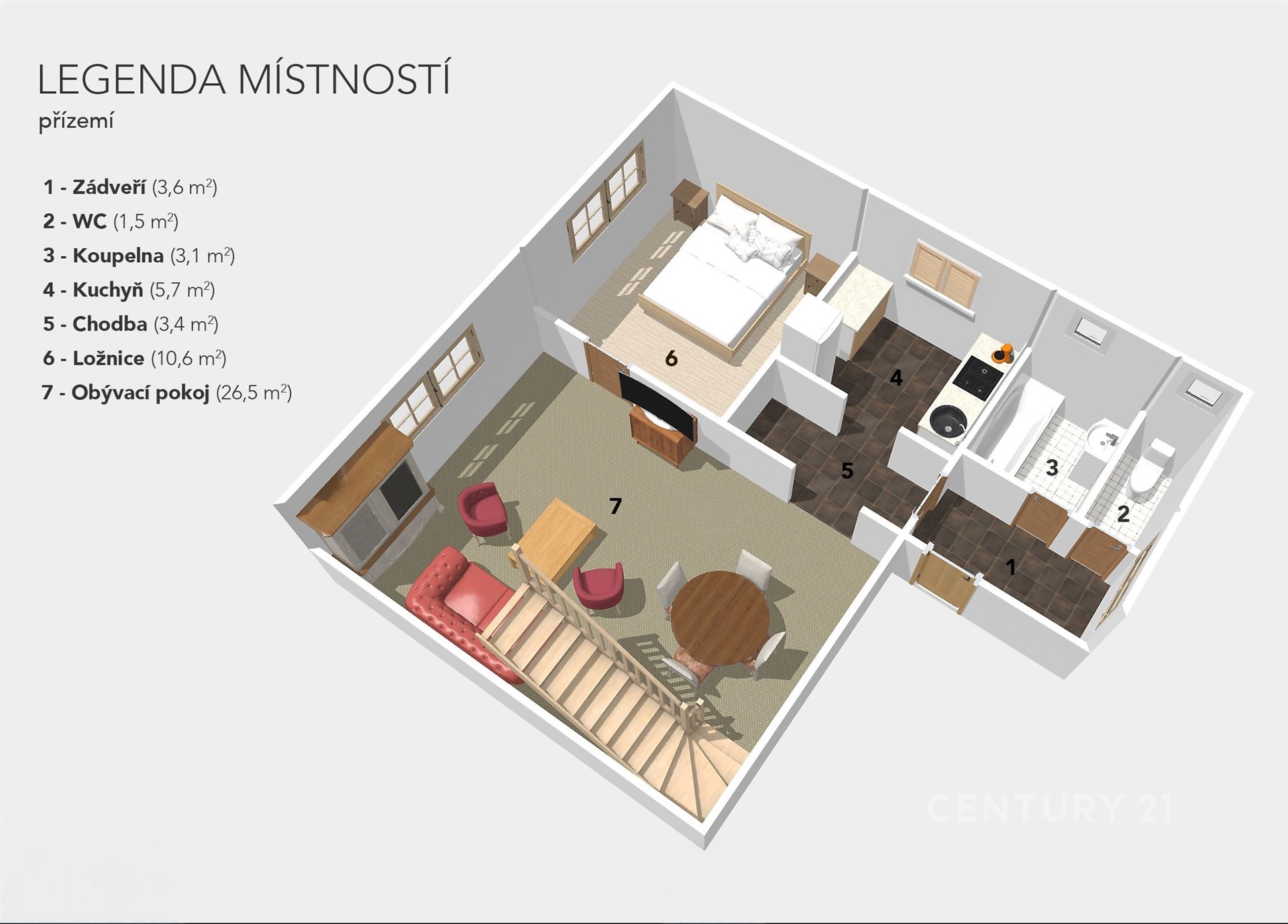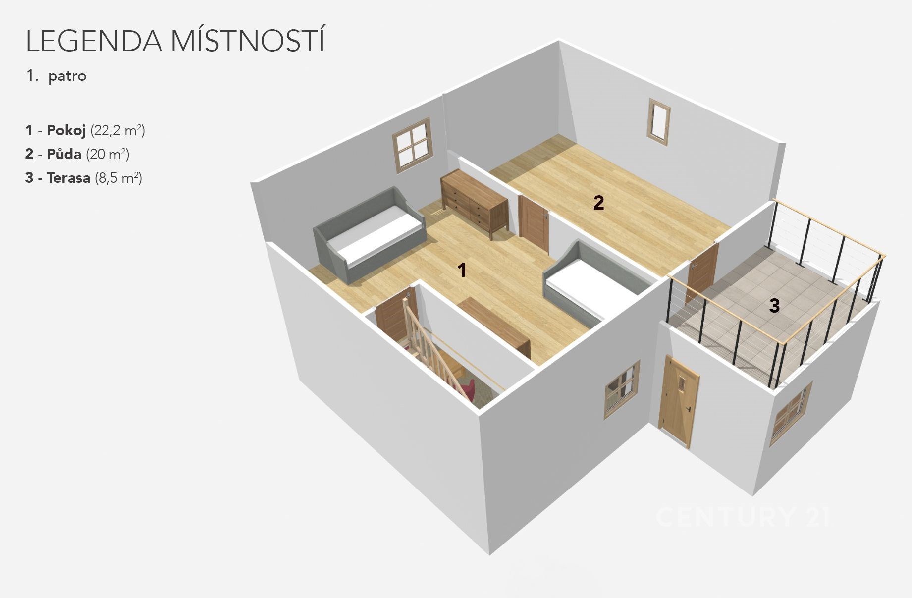 Půdní prostor vhodný k rekonstrukci – možnost rozšíření obytné plochy.
