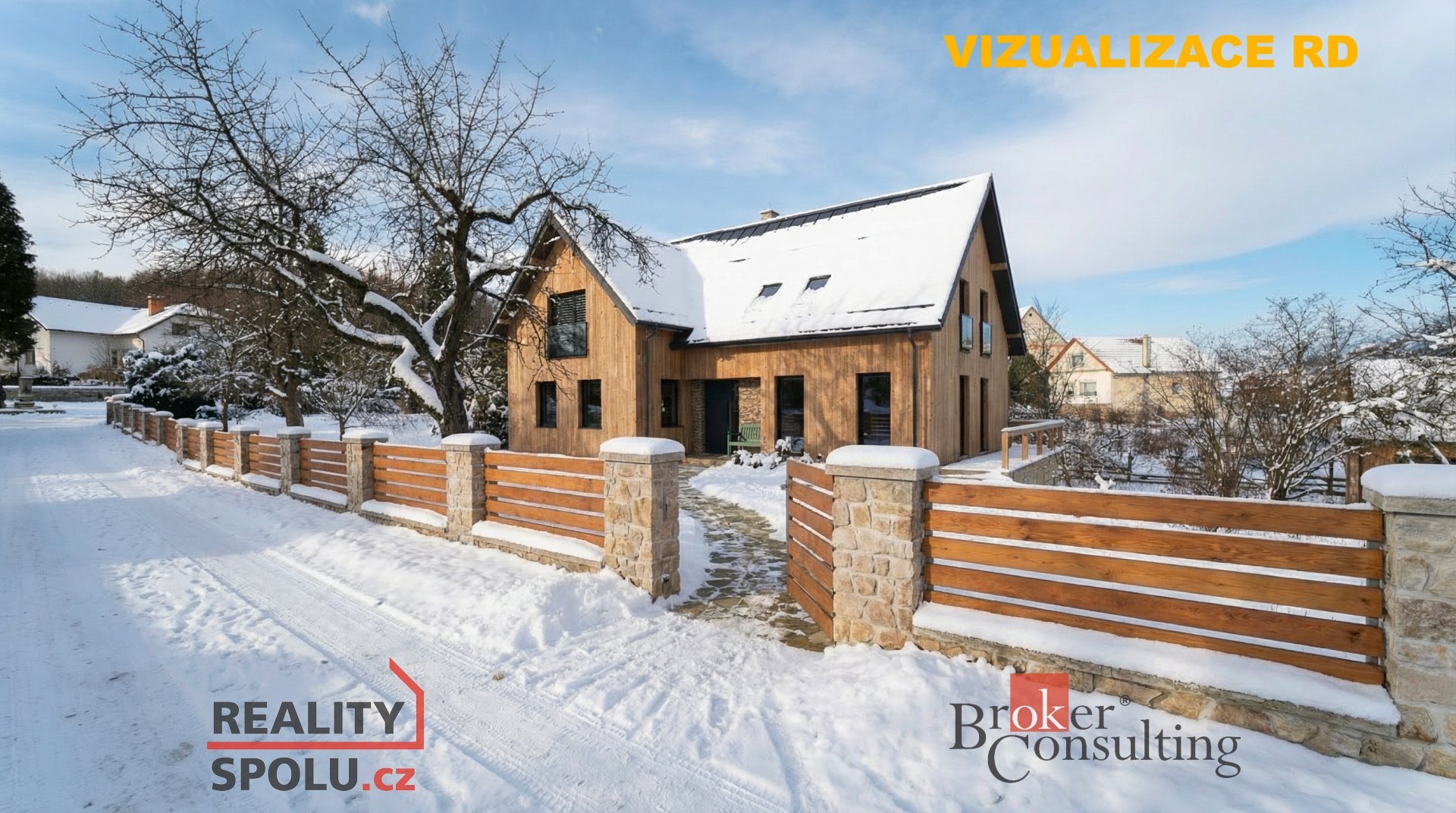 Na prezentaci je použita vizualizace rodinného domu, který není součástí prodeje, ale je na něj již vytvořena projektová dokumentace včetně architektonického zpracování vizualizace zahrady, což je velkou výhodou, čili je zde možno pokračovat v cestě ke stavebnímu povolení, což by Vám ušetřilo mnoho času.