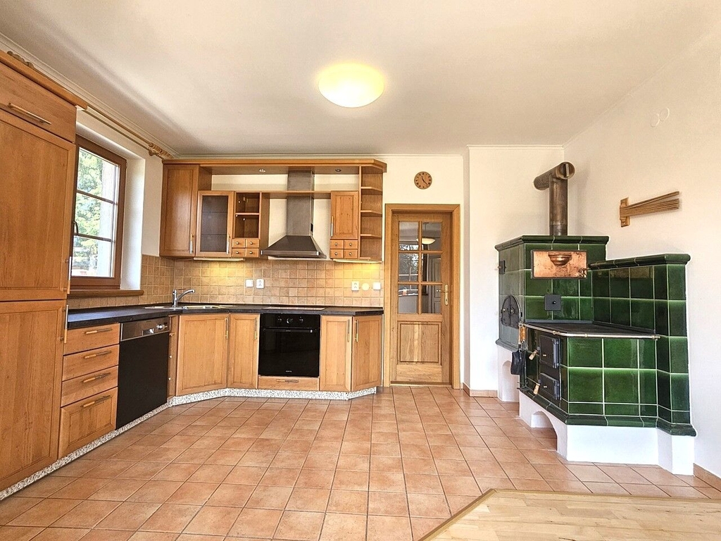 Dům je částečně zařízený nábytkem - jedná se převážně o úložné prostory, stoly a cca 3 postele. Kuchyňská linka zn. Sýkora je vybavena novou indukční varnou deskou, el. troubou, digestoří, myčkou a malou lednicí. V domě byly použity jen kvalitní a drahé materiály - dubové dřevěné podlahy, keramická dlažba, obklady v hlavní koupelně od firmy Villeroy & Boch, skříně, dveře, zárubně a schody jsou výhradně jen z masivu, kvalitní dřevěná eurookna TWW, funkční kachlová kamna v kuchyni z Kamnářství Jan Janoušek, nové osvětlení v obývacím pokoji a kuchyni, nejtišší tepelné čerpadlo na trhu Acond Pro R, centrální vysavač Electrolux, elektronický zabezpečovací systém Rokonet Orbit-Pro apod. Na pozemku je vlastní studna vhodná k zalévání zahrady a závlaha Hunter Pro - C. Kanalizace je obecní. Parkování je možné v prostorné garáži i na pozemku za bránou, která je kovaná, s el. pohony a na dálkové ovládání.