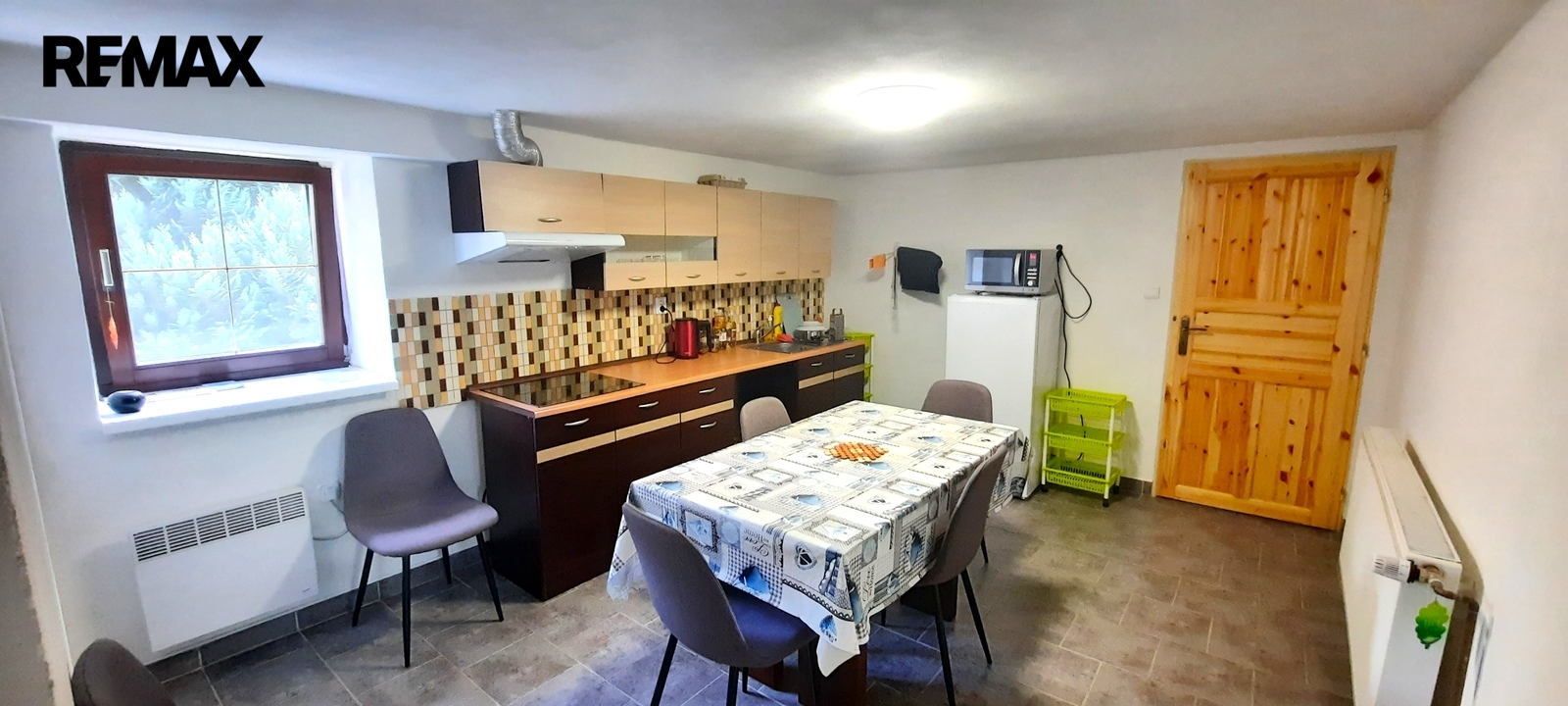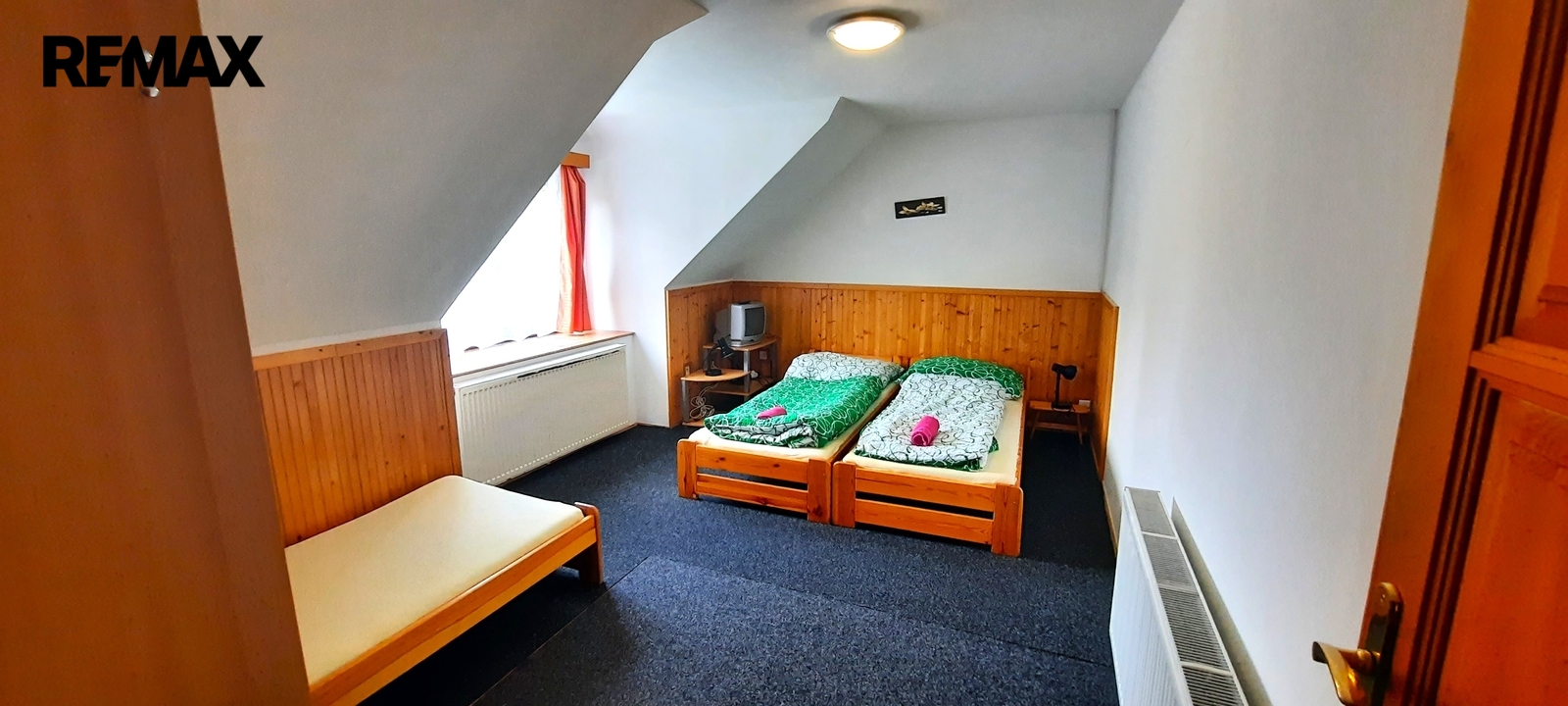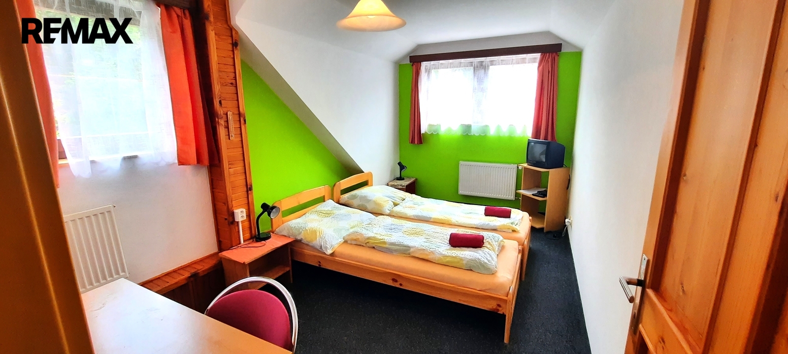 Chalupa o velikosti 300 m2 byla vybudována před 20 lety z asi 100 let starého zemědělského objektu. Zastavěná plocha činí cca 680 m2 a celková výměra parcely je 3811 m2. V současné době je nemovitost využívána jako penzion a nabízí k dispozici 8 pokojů a 2 apartmány. Každý pokoj disponuje vlastní koupelnou a WC. Každé křídlo (3 pokoje) má k dispozici společnou kuchyňku. Každý z apartmánů disponuje vlastní kompletně vybavenou prostornou kuchyní. Dále se zde nachází společenská místnost s vlastní kuchyňskou linkou. V přízemí penzionu se nachází restaurace s kapacitou 40 míst a prostornou kuchyní. Dále možno využít posezení na venkovní terase o velikosti cca 30 míst. Přímo u domu se nachází zastřešený bazén, víceúčelové sportovní hřiště, dětské hřiště s houpačkami a skluzavkou a venkovní posezení s grilem. Parkování možno na vlastním parkovišti před domem nebo přímo v areálu.