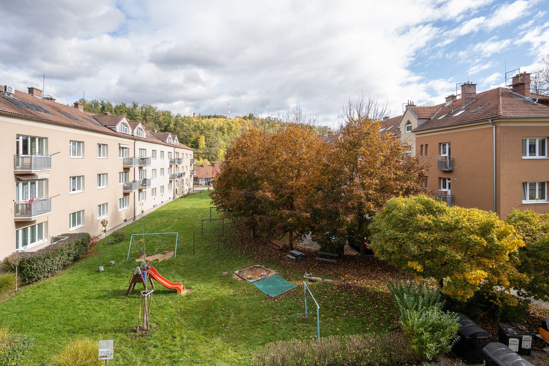 Okolí bytu přináší benefity bydlení v krásném centru dynamicky se rozvíjejícího města, ale zároveň uprostřed krásné přírody. Ve vnitrobloku domů s parkovou úpravou je klidné dětské hřiště a spousta odpočinkových zón. V docházkové vzdálenosti jsou sportoviště (aquapark, sportovní hala), obchody, restaurace i knihovna.