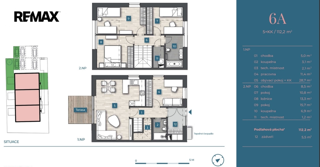 • dispozice 5+kk s podlahovou plochou 112.8 m²