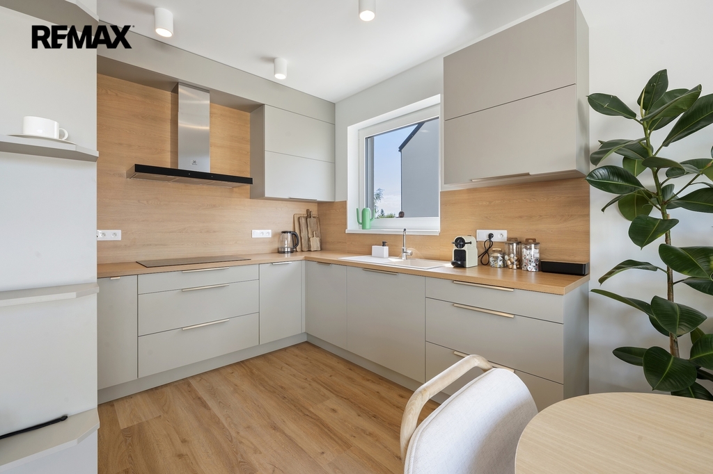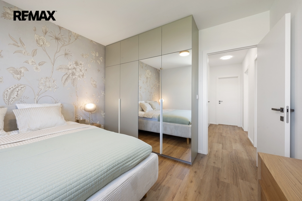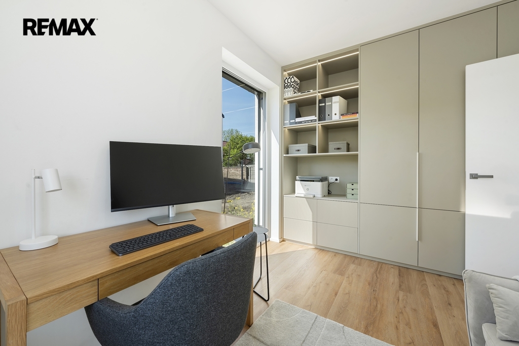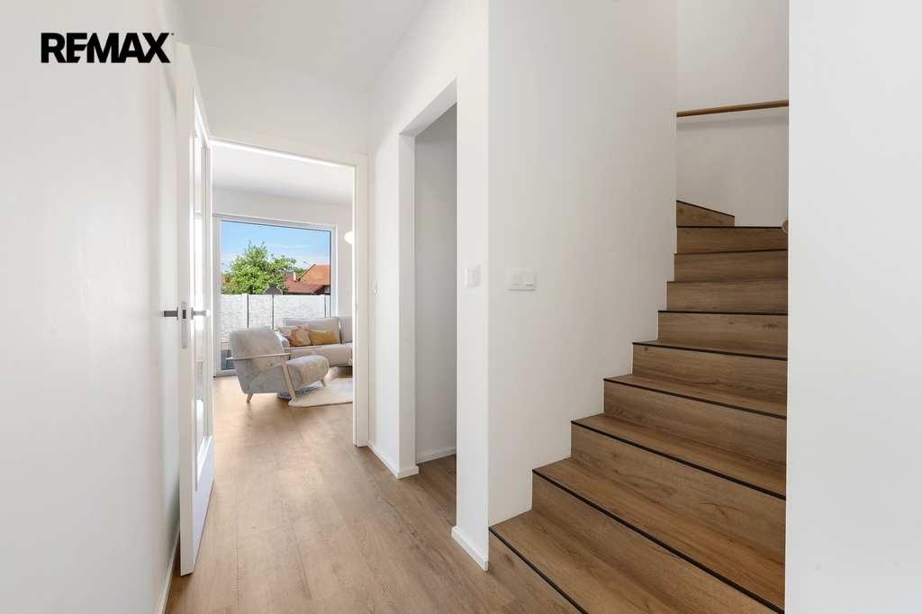 Dvoupatrový jednotka vedená jako bytová je plnohodnotný rodinný dům se vším co od domu člověk očekává. Nabízí promyšlenou dispozici 5+kk – čtyři samostatné pokoje, prostorný obývací pokoj s kuchyňským koutem, dvě koupelny a technickou místnost. Celková podlahová plocha činí 112.8 m². K domu náleží pozemek před domem pro parkování dvou automobilů a pozemek za domem, kde se nachází terasa o velikosti 35 m². Parkování je doplněno wallboxem pro dobíjení elektromobilu.