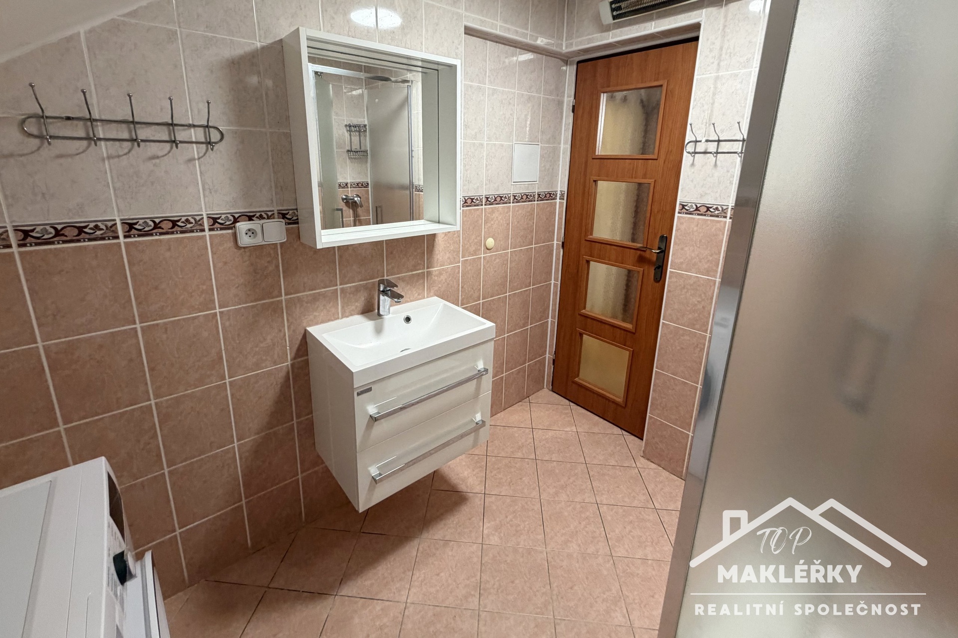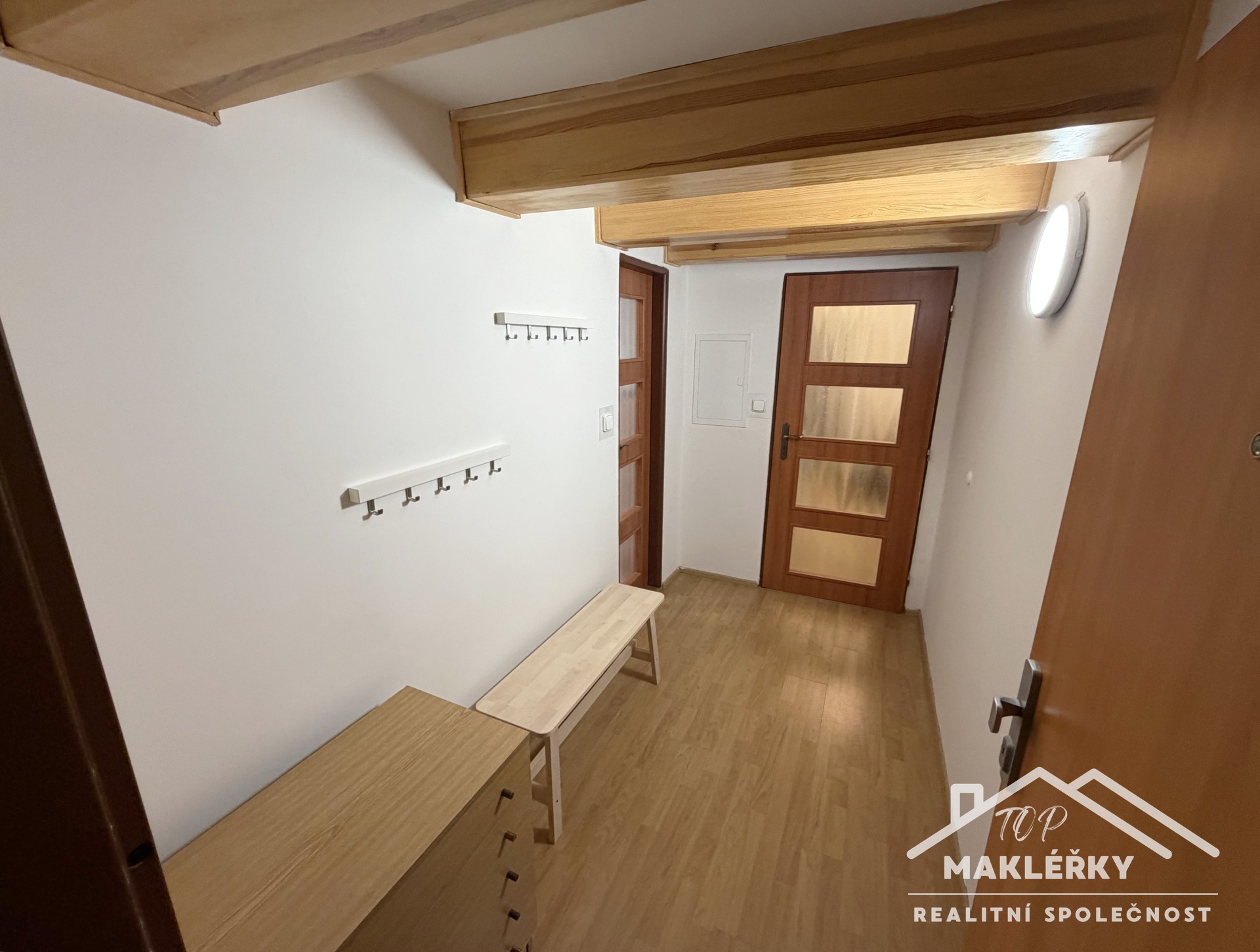 Stačí dokoupit konferenční stolek a kelímek na zubní kartáčky........ Nabízím pronájem zcela zařízeného bytu 1+1, který se nachází v menším bytovém domě. Dům po rekonstrukci je situován v klidné lokalitě, přitom blízko centra města. Jedná se o byt s parkováním v uzamčeném dvoře, velkou sklepní kójí, půdou k sušení prádla a kolárnou. Dvůr okolo domu je určen jen pro nájemníky, kteří zde mohou odpočívat, umístit si svůj venkovní nábytek nebo sušit prádlo. To vše je zahrnuto v ceně pronájmu. Byt po rekonstrukci s výměrou 35 m2 se nachází v 2. patře a sestává z obývacího pokoje, samostatné kuchyně, prostorné koupelny a velké chodby. Koupelna je vybavena sprchovým koutem, umyvadlem a WC, ze spotřebičů zde najdete zánovní pračku a sušičku. Kuchyň je dostatečně velká a dá se využít i pro jídelnu, vaření je na elektrickém sporáku, součástí vybavení je i lednice s mrazákem a drobné spotřebiče jako MWT, rychlov. konvice, kávovar, toastovač. Kuchyň je také vybavena skříní a jídelním stolem ze židlemi. V obývacím pokoji je rozkládací gauč, který je vhodný i na spaní, velká šatní skříň, stolek pod TV a televize. Vytápění bytu je zajištěno akumulačními kamny a ohřev vody boilerem. Byt je velikostně vhodný pro max. 2 osoby a majitel upřednostní zájemce bez domácích mazlíčků. K uvedenému nájmu je nutné přičíst poplatky za elektřinu ve výši cca 2.500-3.000 Kč. Další poplatky činí 490 Kč, což je záloha na studenou vodu, odpady a elektřinu na chodbách (za 1 osobu). Kauce činí 2 měs. nájmy a zároveň se skládá vratná záloha 1.000 Kč za ovladač na el. ovládanou bránu. Poplatek RK ve výši jednoho měs. nájmu.