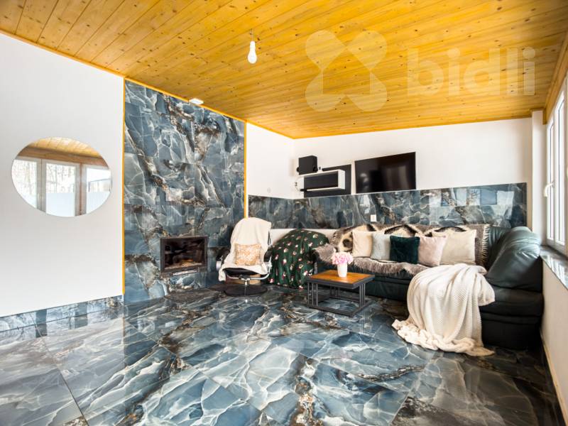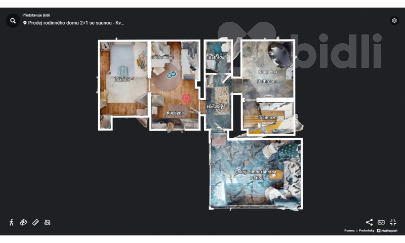 Podlahová plocha domu činí 68m2 a je momentálně dispozičně řešen jako 2kk s vlastní saunou, se zimní terasou, letní terasou a zahradou 1045m2, s možností dvoupokojové přístavby o velikosti dalších 52m2 v přední části domu a to již s hotovou základovou deskou.