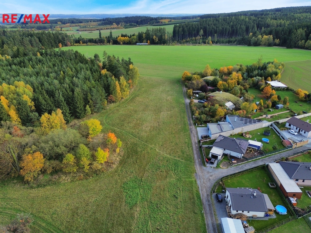 Pozemek sousedí přímo s lesem, což zajišťuje nádherný výhled do zeleně a okamžitý přístup do přírody. Vedle se rozprostírá pole, ideální na procházky nebo venčení psů.