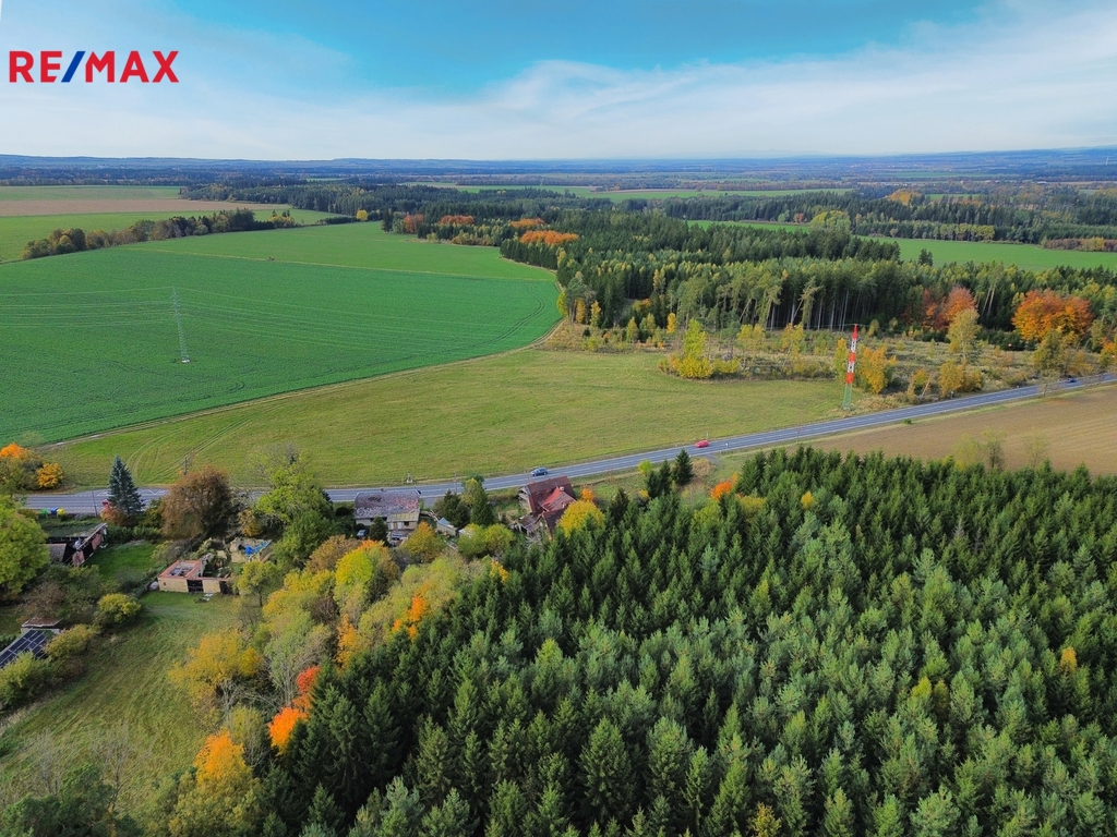 Pozemek sousedí přímo s lesem, což zajišťuje nádherný výhled do zeleně a okamžitý přístup do přírody. Vedle se rozprostírá pole, ideální na procházky nebo venčení psů.