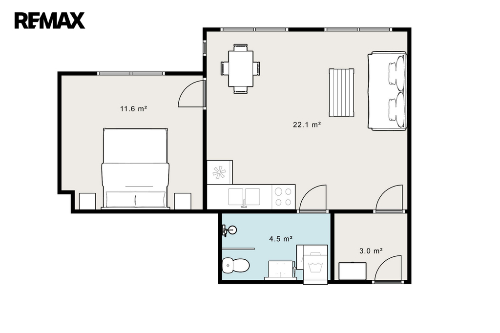- Celková podlahová plocha: 43 m²