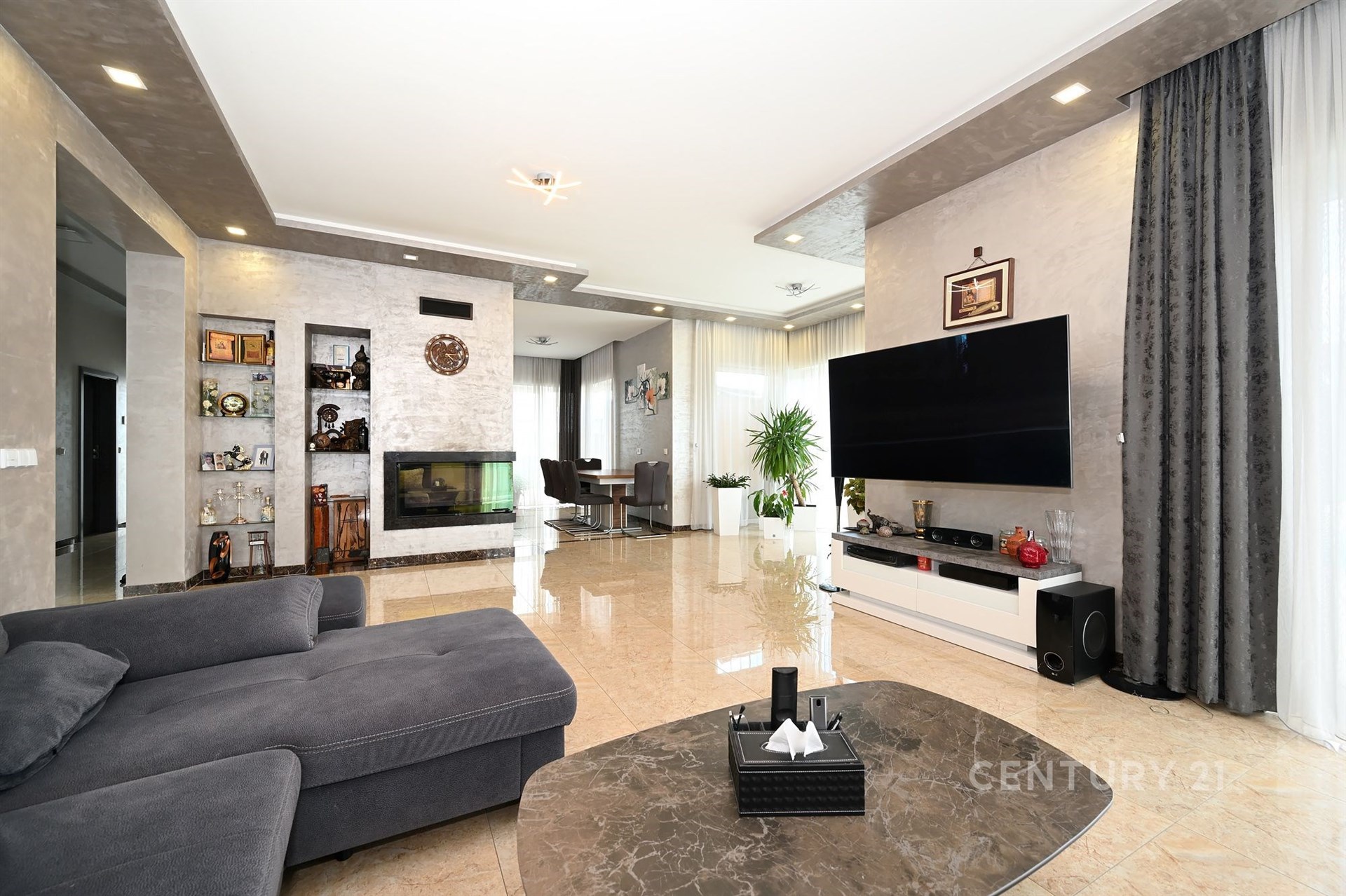 V přízemí se nachází prostorný obývací pokoj s krbem a vstupem na zahradu, moderní kuchyň s ostrůvkem, varnou deskou Siemens s WiFi, digestoří Bosch a americkou lednicí Samsung, jídelna, pokoj pro hosty nebo pracovna, koupelna se sprchou a WC, technická místnost a šatna. Podlahy jsou z keramiky a mramoru, stěny zdobí benátský štuk, schodiště je z přírodní žuly.