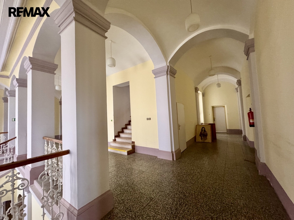Dominantou budovy je prostorná chodba s původním zábradlím a klenuté stropy na chodbách, které podtrhují historický charakter objektu. V budově je k dispozici výtah.