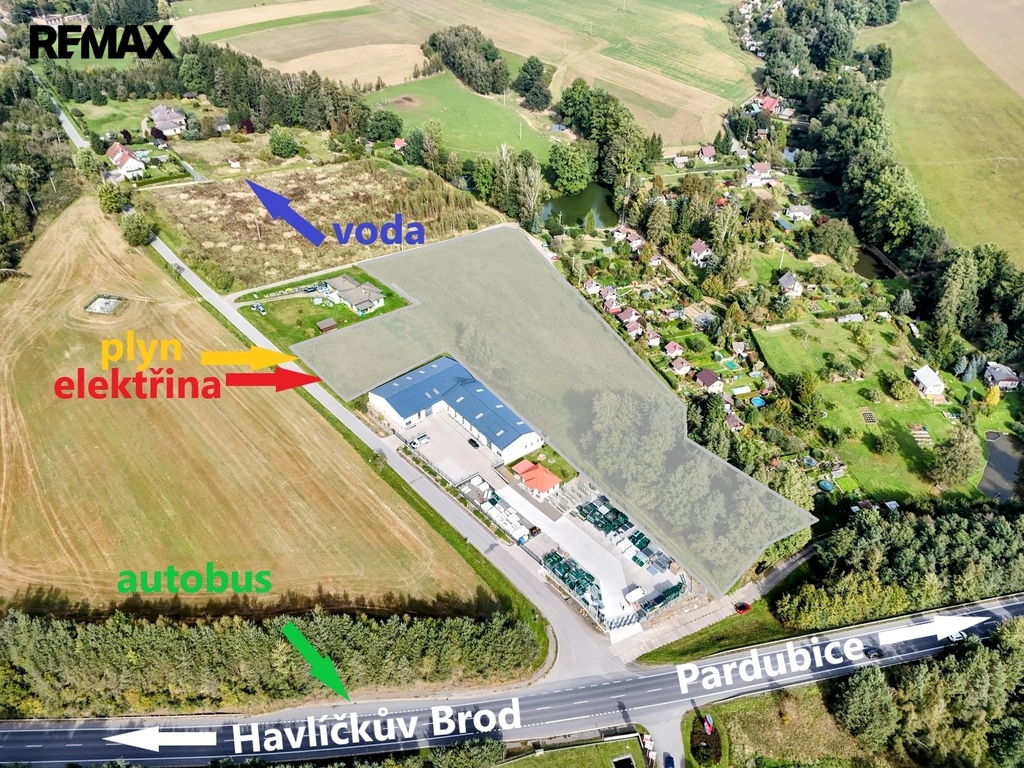 • Velkou výhodou pro případné zaměstnance je autobusová zastávka, která se nachází přímo u silnice I/34 v bezprostřední blízkosti pozemku.
