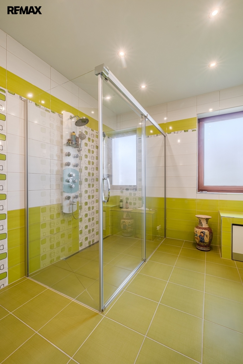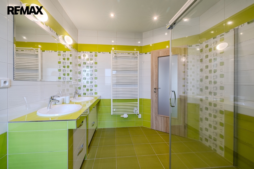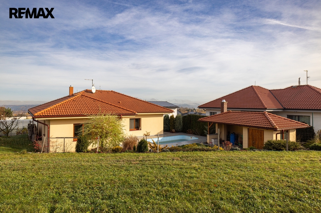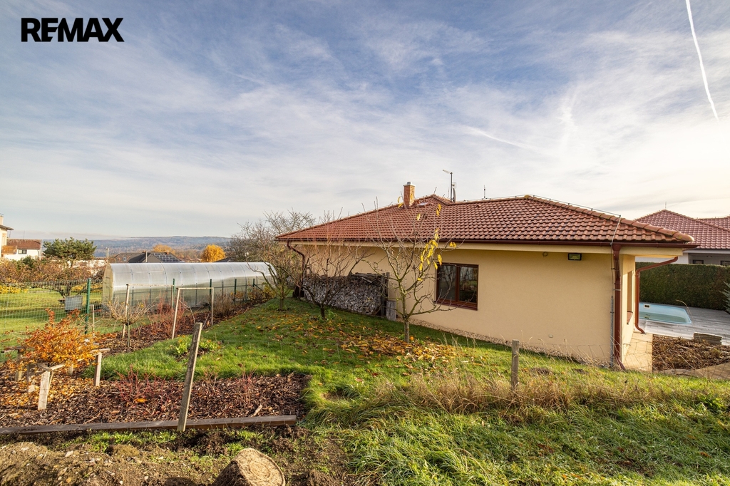nízké provozní náklady díky tepelnému čerpadlu, vyhřívaný bazén, žulovou terasu, přírodu za domem, klidné místo a chytrou dispozici s dostatkem úložných prostor – včetně dvou šaten.