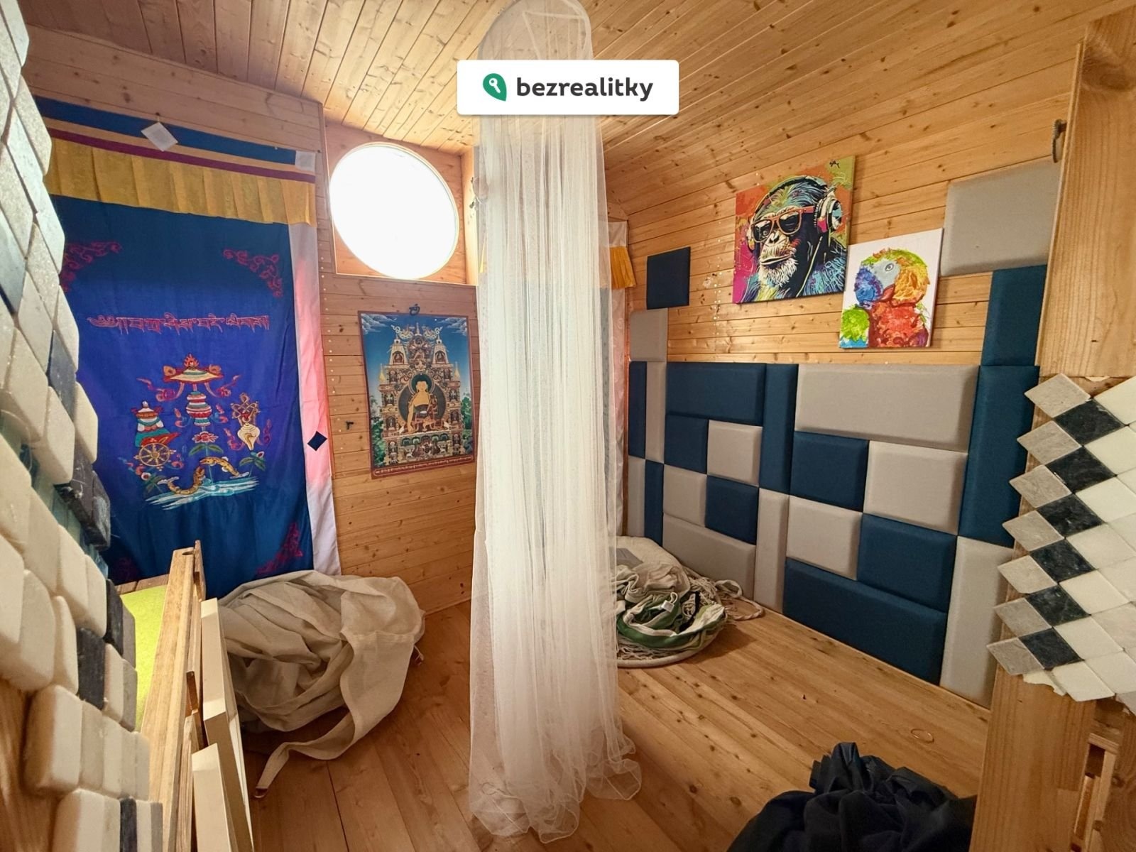 Částečně vybavená chata nabízí možnost si vytvořit interiér přesně podle svých představ, ačkoliv zůstává zachována její původní půvabná atmosféra.