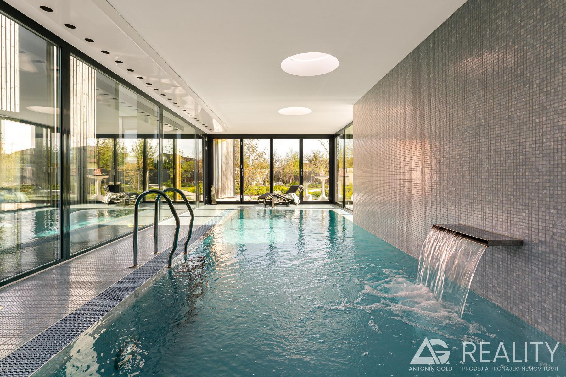 Krytý bazén (7,0 × 2,7 m) s proti-proudem a chrličem vody je ideálním místem pro odpočinek a aktivní relaxaci.