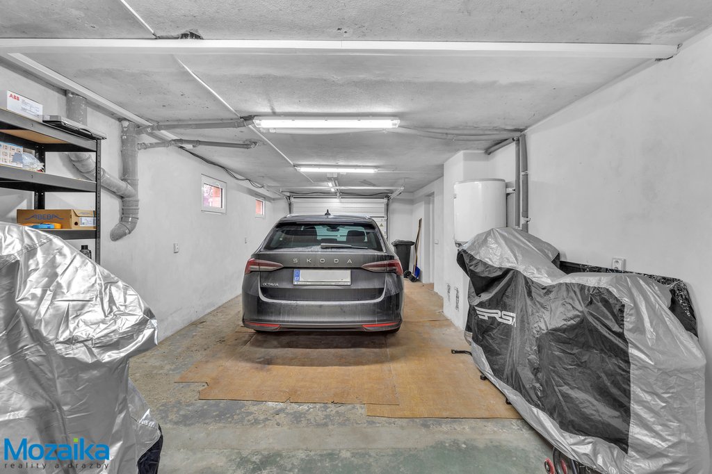 Suterén nabízí garáž s dílnou, prádelnu a tři další místnosti využitelné podle vašich potřeb – ať už jako sklady, hobby místnosti či domácí posilovnu.