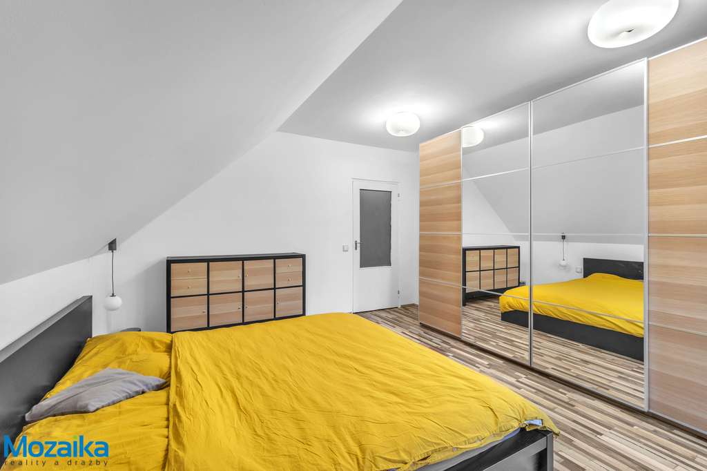 Podkroví disponuje samostatným WC, koupelnou s vanou a umyvadlem, třemi pokoji, druhou kuchyní, komorou a půdním prostorem. Tato dispozice je ideální pro rodiny s dětmi i pro vícegenerační bydlení.