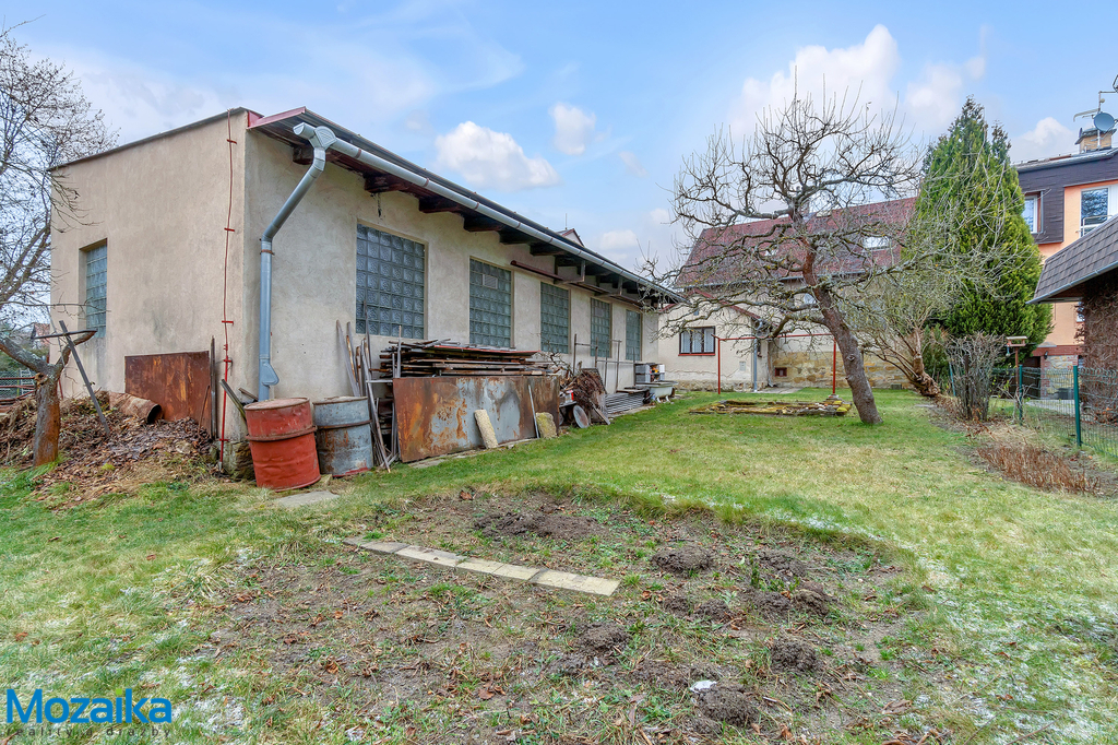 Samotný dům stojí na pozemku, který nabízí vzácnou kombinaci soukromí a praktičnosti. Před domem vás přivítá příjemná předzahrádka, která vytváří příjemný vstup do objektu a zároveň poskytuje dostatek prostoru pro parkování nebo posezení. Průjezd vede do zadní části pozemku, kde se nachází prostorná zahrada s velkou zděnou dílnou vybavenou garážovými vraty. Celý pozemek je oplocený, což zajišťuje naprosté soukromí a bezpečnost pro vaši rodinu i domácí mazlíčky.