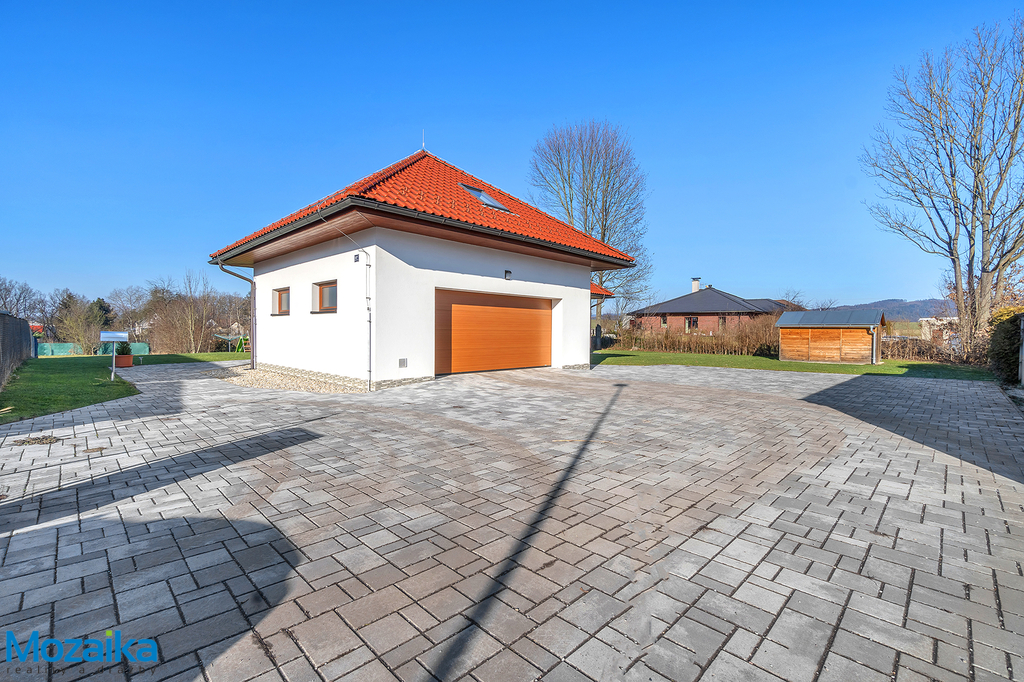 U domu se nachází praktická dvougaráž s přímým vstupem do domu, další parkovací místa před garáží a upravená rovinatá zahrada, která nabízí dostatek prostoru pro relaxaci, dětské hry nebo zahradničení. V případě požadavku na ještě větší zahradu je zde možnost dokoupení dalšího navazujícího pozemku, což vám dává flexibilitu pro budoucí rozšíření vašeho soukromého zázemí.
