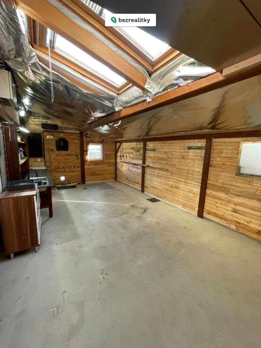• Dílna 7×3,8 m z PUR panelů + skladové prostory cca 70 m² (možná přestavba)