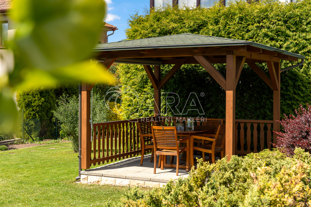 Na příjemné zahradě byl postaven dřevěný altán lákající k posezení s rodinou či přáteli, je zde kopaná studna i ohniště na opékání. Dále tři dřevěné kůlny s betonovým základem, okrasné záhony, keře a stromy, ovocné keře, jabloň i záhony určené k pěstovaní zeleniny, několik nádrží na dešťovou vodu.