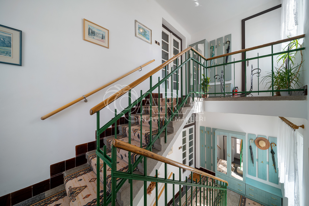 o První patro: Byt 3+1 o výměře přibližně 78 m², který byl před cca 25 lety zrekonstruován. Zahrnuje kuchyň, spíž, jídelnu, ob. pokoj s krbovými kamny, ložnici se zaskl. balkonem, komoru a koupelnu s vanou, sprch. koutem a s toaletou.