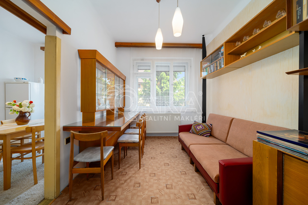 o Zvýšené přízemí: Byt 3+1 o výměře přibližně 78 m², vhodný k renovaci. Sestává z kuchyně, spíže, jídelny, 2 pokojů, koupelny a toalety.