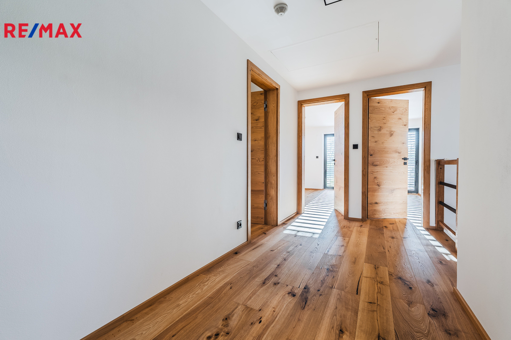 Patro: čtyři útulné ložnice + prostorná pracovna (43,8 m²) a koupelna