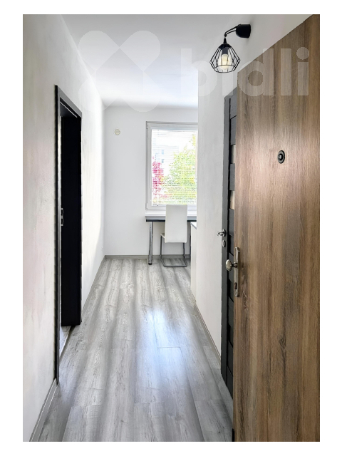 - Popis vybavení: Byt po kompletní rekonstrukci, v kuchyni kuchyňská linka se sklokeramickou deskou, troubou a digestoří, jídelní pult a dvě židle, v ložnici postel a skříň
